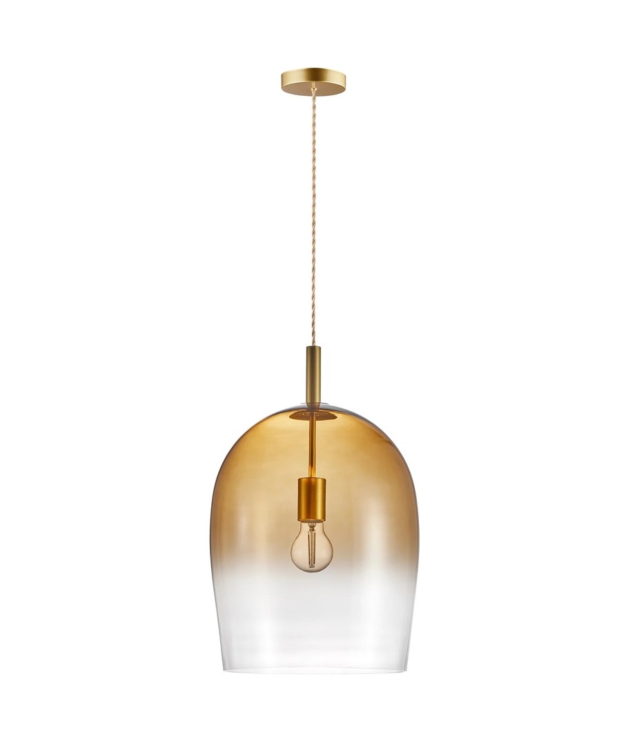 Uma-serien setter et moderne og dekorativt preg på den klassiske pendelen. Den munnblåste glasskjermen har en elegant, oval form som vakkert rammer inn lyset.