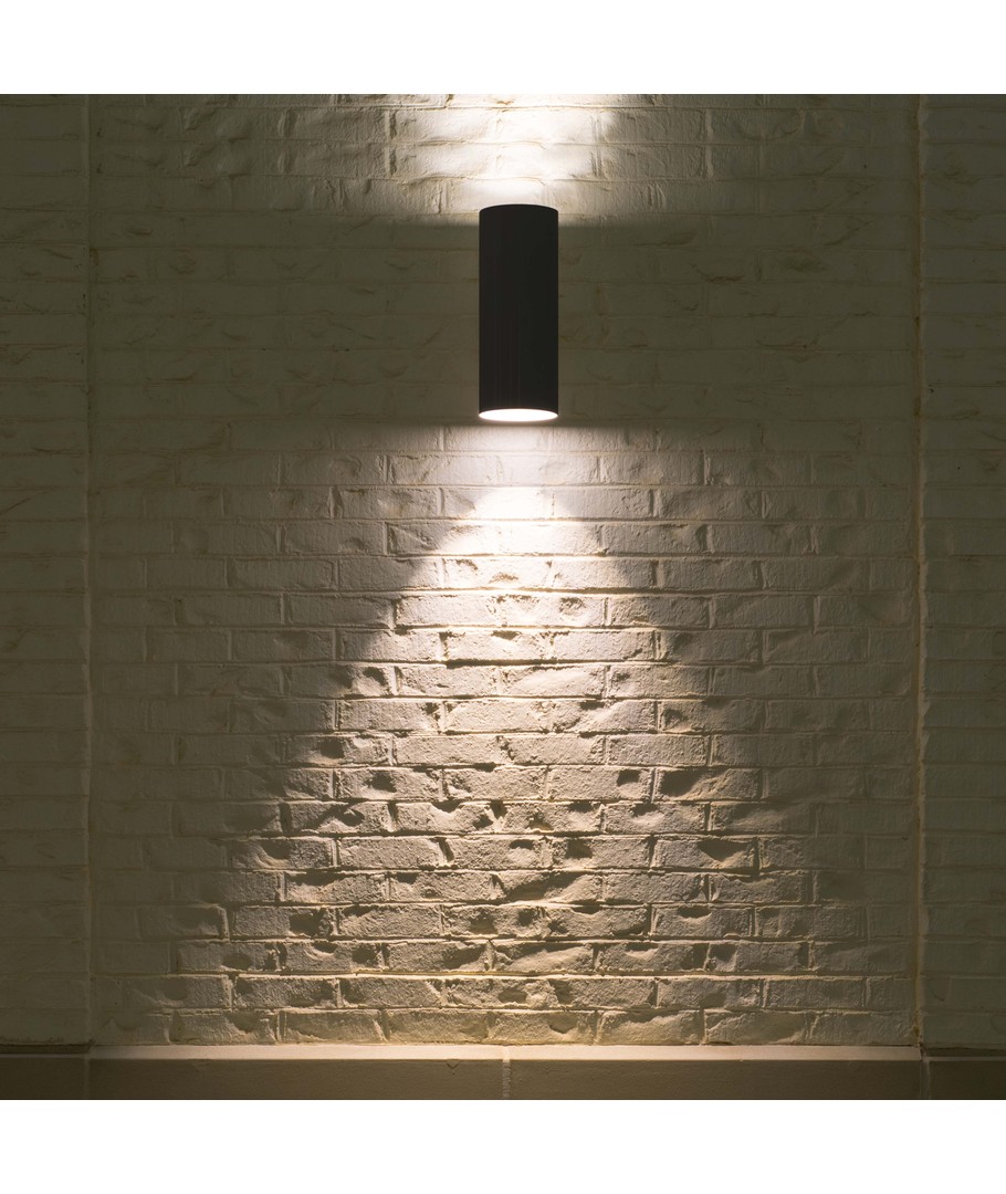 Gi boligen din et markant arkitektonisk løft med denne stilrene Up/Down vegglampe i sort aluminium. Lampen er skapt for å fremheve husets linjer ved å kaste et fokusert lys både oppover og nedover, noe som skaper en flott dynamikk på fasaden og gjør uterommet mer innbydende.