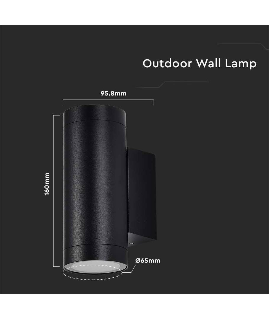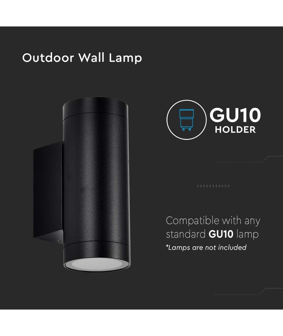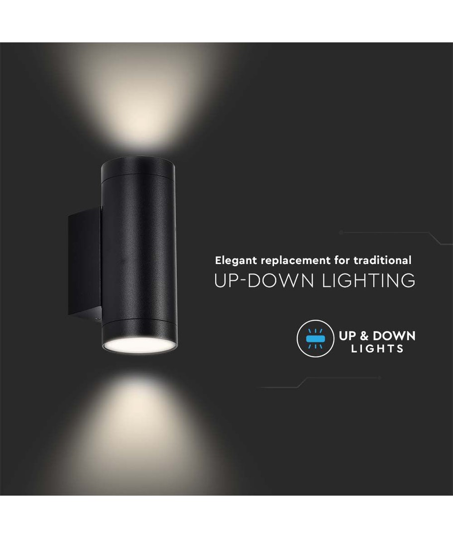 IP65 utendørs, rund, sort, opp/ned, inkl. lyskilde