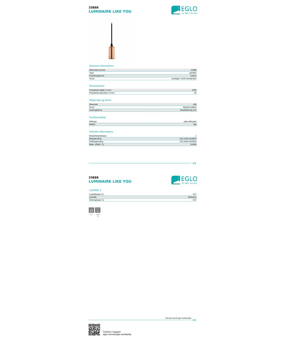 D.C Pendel Ø26 E27, hvit / eik