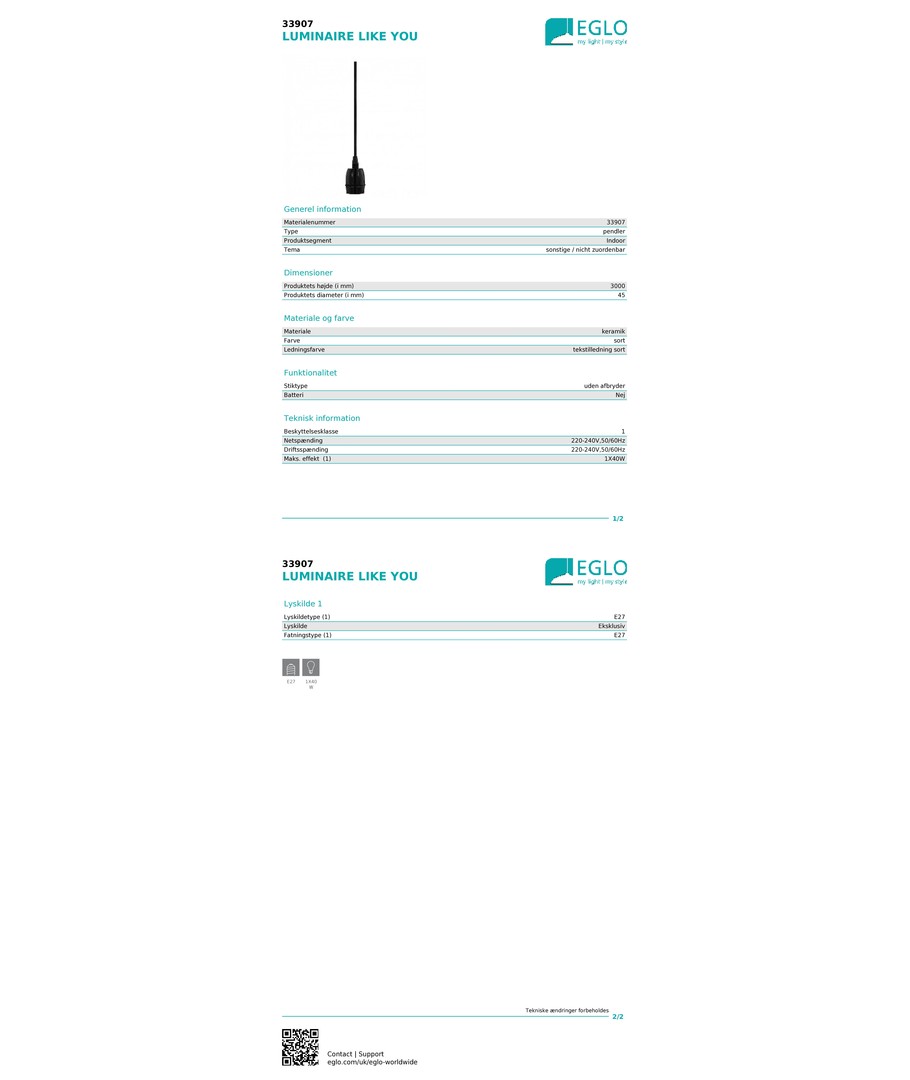 THE CLASSIC Pendel Ø30 Børstet Svart