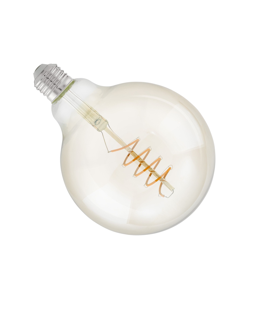 Dekorativ LED globe-pære (Ø: 125mm) fra EGLO, bruger kun 4W, og pæren er dæmpbar i 3 trin. Det vil sige den kan dæmpes i 3 niveauer.