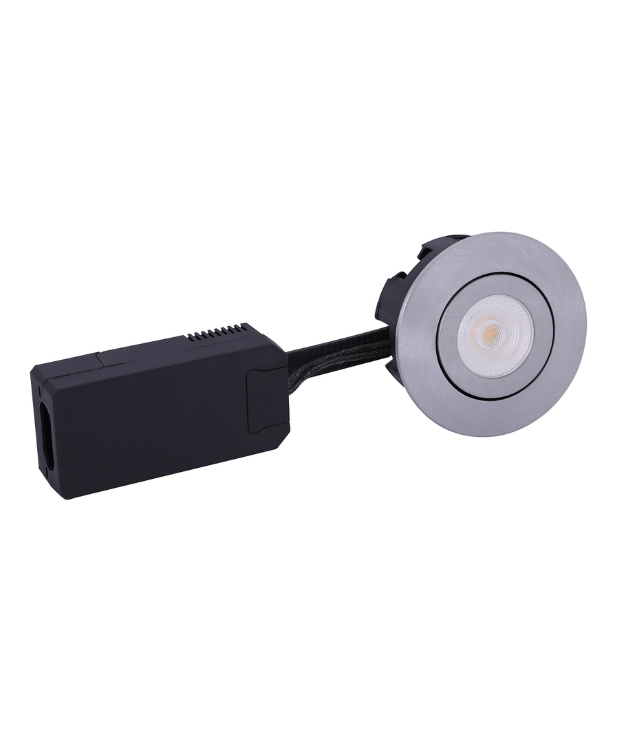 Denne DimTone LED indbygningsspot i børstet stål har en meget lav innbyggingshøyde på kun 38mm. Kan monteres direkte i isolasjon og mot dampsperre. Spottet er på kun 6,5W, har en fargegjengivelse på Ra95 og leveres med 60° spredningsvinkel på lyskilden, for direkte tilkobling til 230V via koblingsboks.