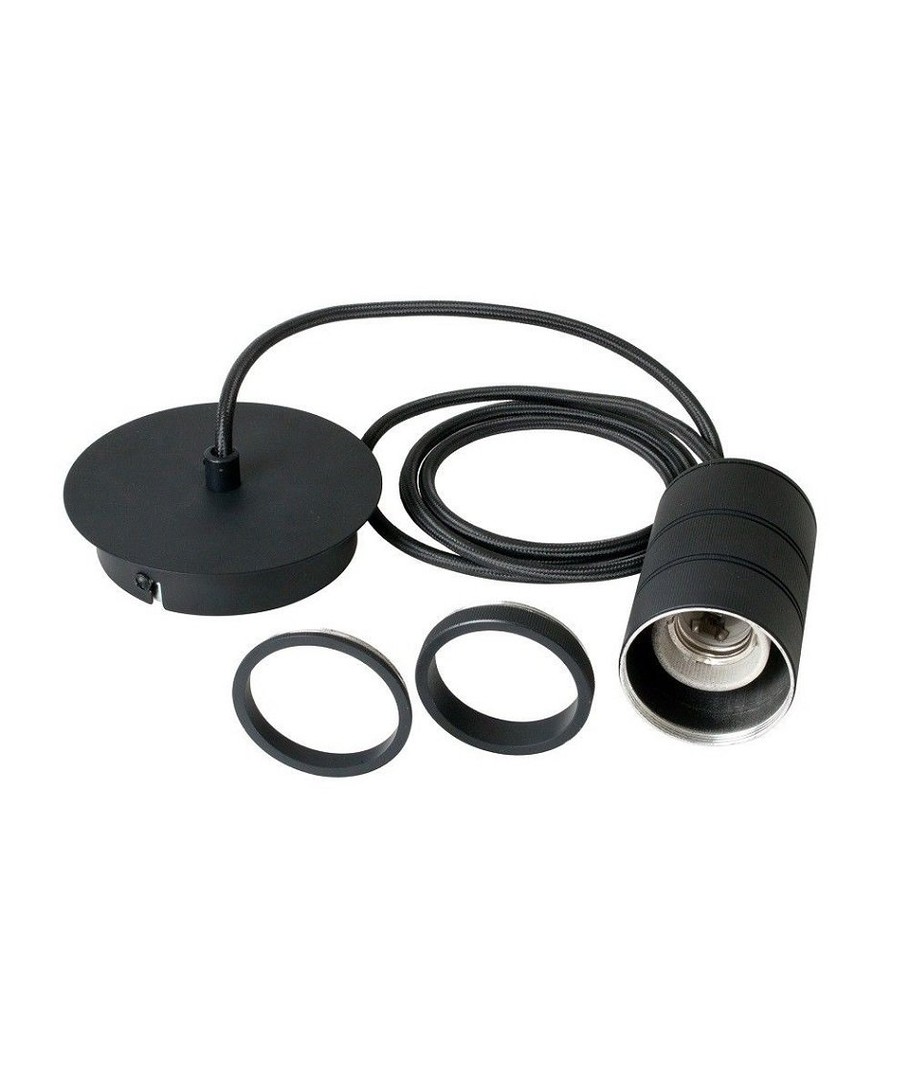 Calex Retro pendant, black fittings - E27 Fatnings/pendel sæt med 2 meter lækker stofledning klar til brug.