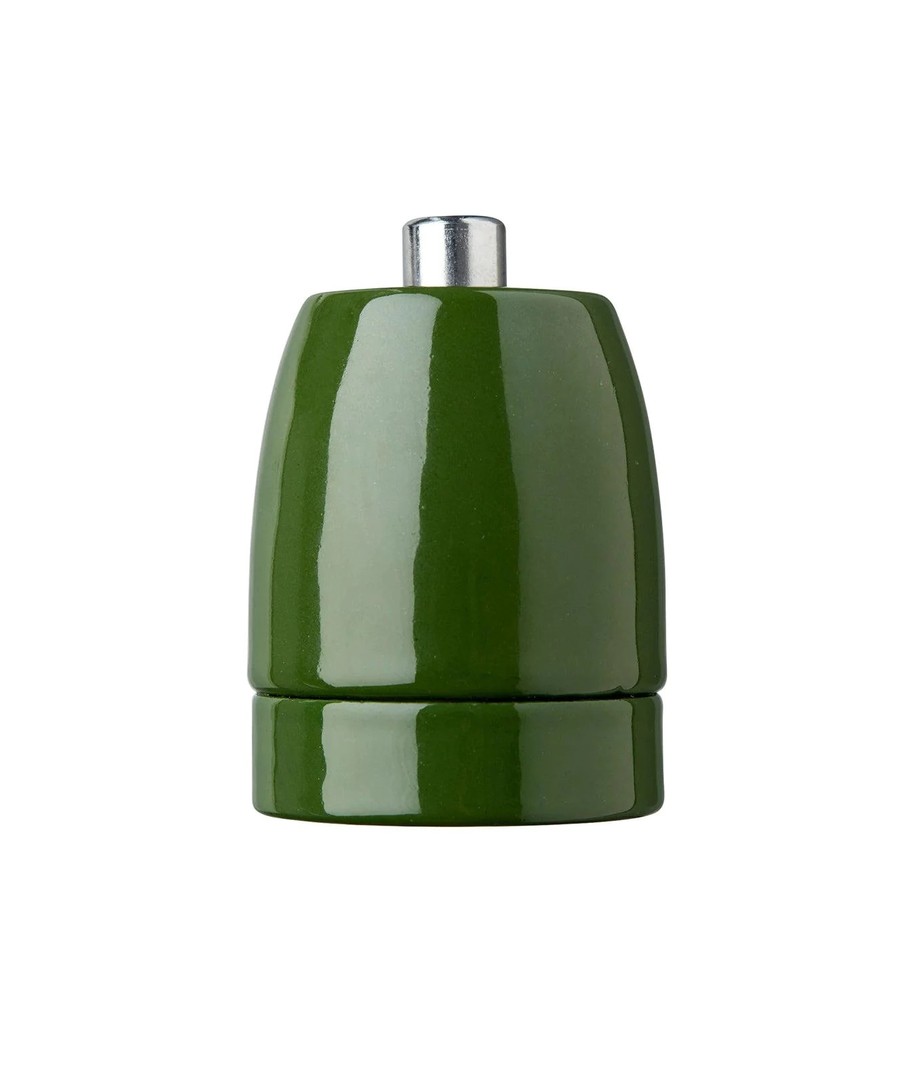 Vakker E27 fatning av porselen i grønn.
