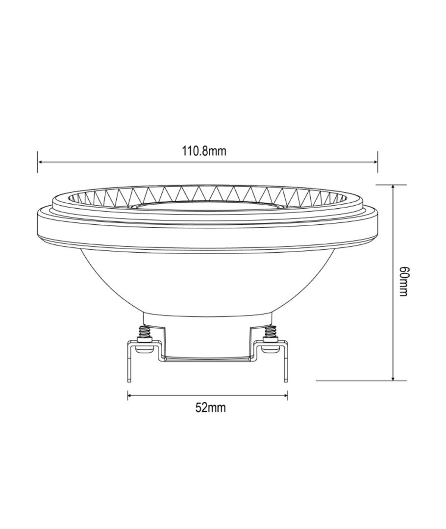 Her får du en AR111 spot med en UGR<19 som er litt over det normale, da lysfargen er 2700K varm hvit, men også fargegjengivelsen er meget høy, og ligger på Ra97. Dioden som brukes i denne spotten er fra japanske SHARP, som i dag er blant de 3 største produsentene i verden. Det sikrer deg lang levetid og riktig lysfarge.