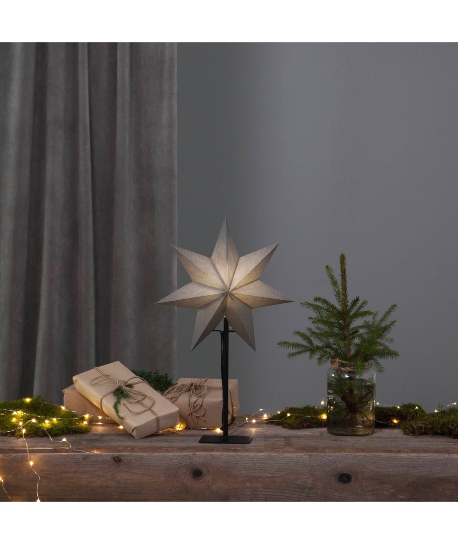 EGLO OZEN Papirs stjerne bordlampe i grå. Leveres med gennemgangsafbryder på ledningen samt stikprop.