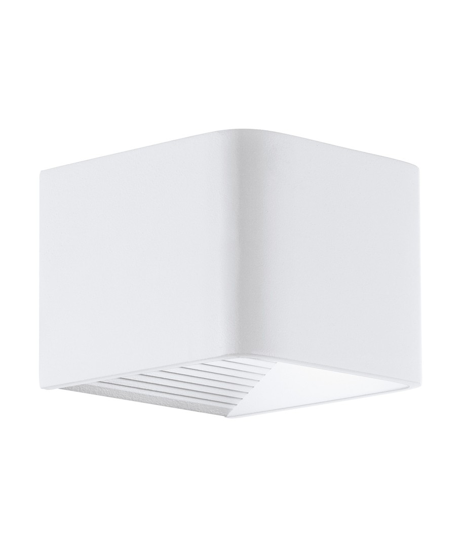 Udformet af hvid aluminium og plastik, med en rist over lyskilden, så dens lys stråler på sin helt egen måde.