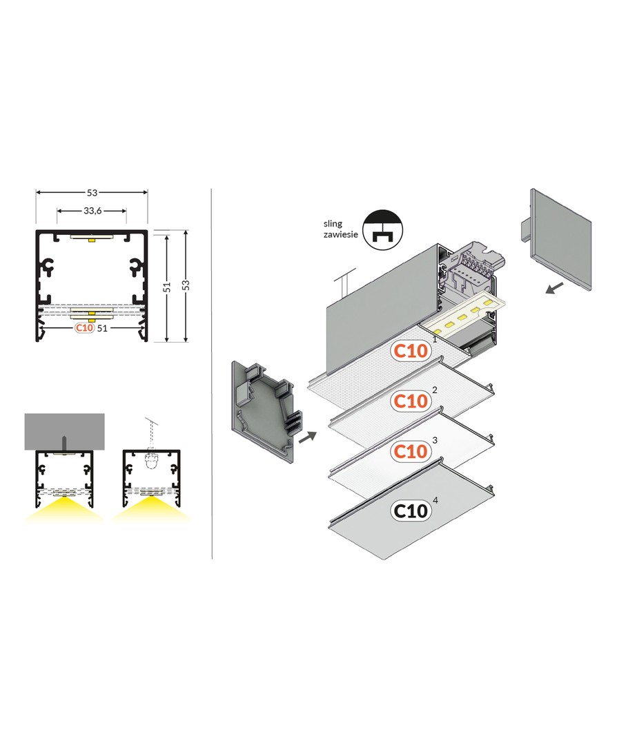 Anodisert, påbygging, LED skinne