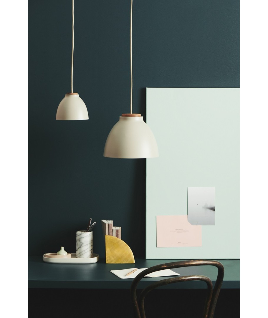 Halo Designs nye serie med lamper "Nivå" Skaper balanse mellom industri og natur - Designet ble skapt mellom Michael Waltersdorff og Emanuele Patton. Metallskjermen gir det industrielle designet, dersom skjermen retter opp lyset med den hvitlakkerte innerskjermen, som dermed sørger for at det meste av lyset kanaliseres i direkte retning. Serien er imidlertid designet med det unike på toppen, hvor det er innarbeidet en dekorativ ring i heltre. Det vil garantert være en fin linje mellom lampeskjermen og treringen, hvor lyset vil gi en elegant stripe av behagelig lys. Treringen gir den naturlige balansen, en fin tonet farge i treet gir det rolige designet. En virkelig fin balanse. Serien finnes i flere utgaver, som gulv, pendel i 2 størrelser, og vegglampe. alle modellene finnes også i 2 farger Grå og svart. Nivå er laget med standard stikkontakter i E27 og G9. Vi anbefaler å bruke LED-lyskilder, hvor du enkelt kan finne de riktige alternativene hos COLORS By Halo design. Level lampe-serien den perfekte balansen - Halo Design