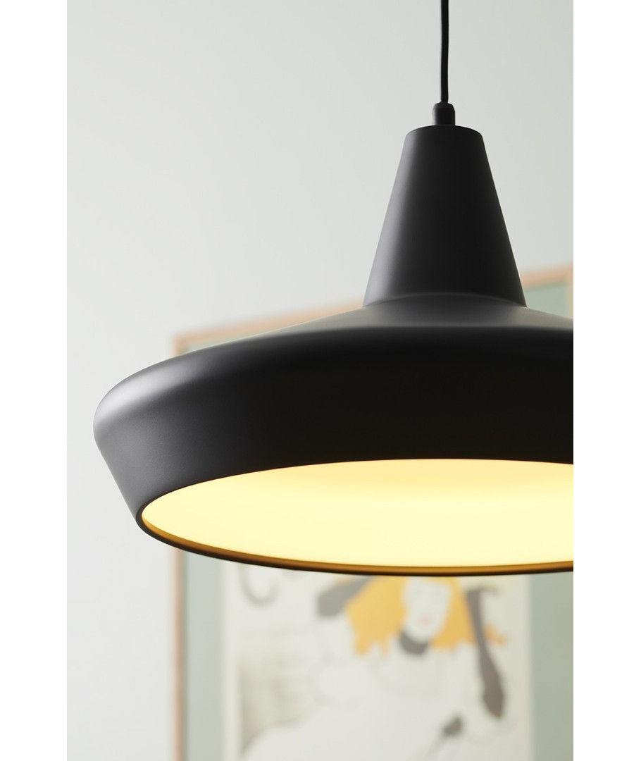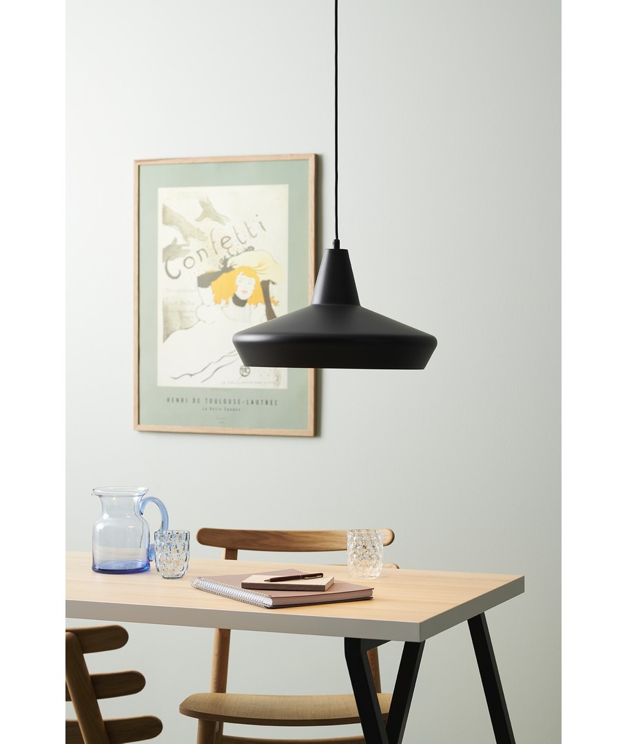 Med sine dimensjoner på 21 x Ø37 mm, fremstår pendelen med et minimalistisk uttrykk som passer inn i både små og store rom. Den sorte finishen gir den et tidløst utseende, og den kan enkelt tilpasses ulike interiørstiler.