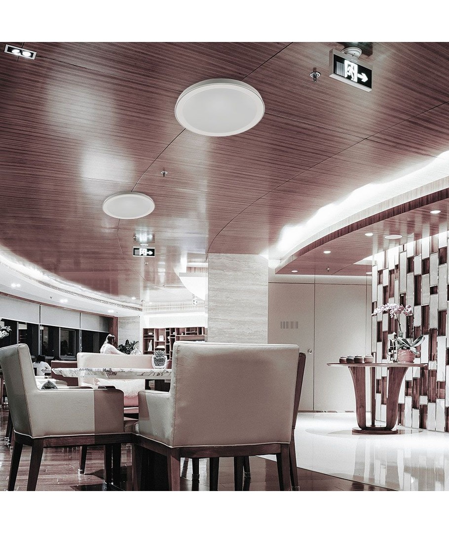Taklampen er utstyrt med integrert lyskilde, noe som gir enkel installasjon og lang levetid. Med muligheten for CCT-justering kan du tilpasse lysets fargetemperatur basert på dine ønsker og behov. Lampen er dimbar, slik at du kan skape den perfekte stemningen ved å justere lysstyrken.