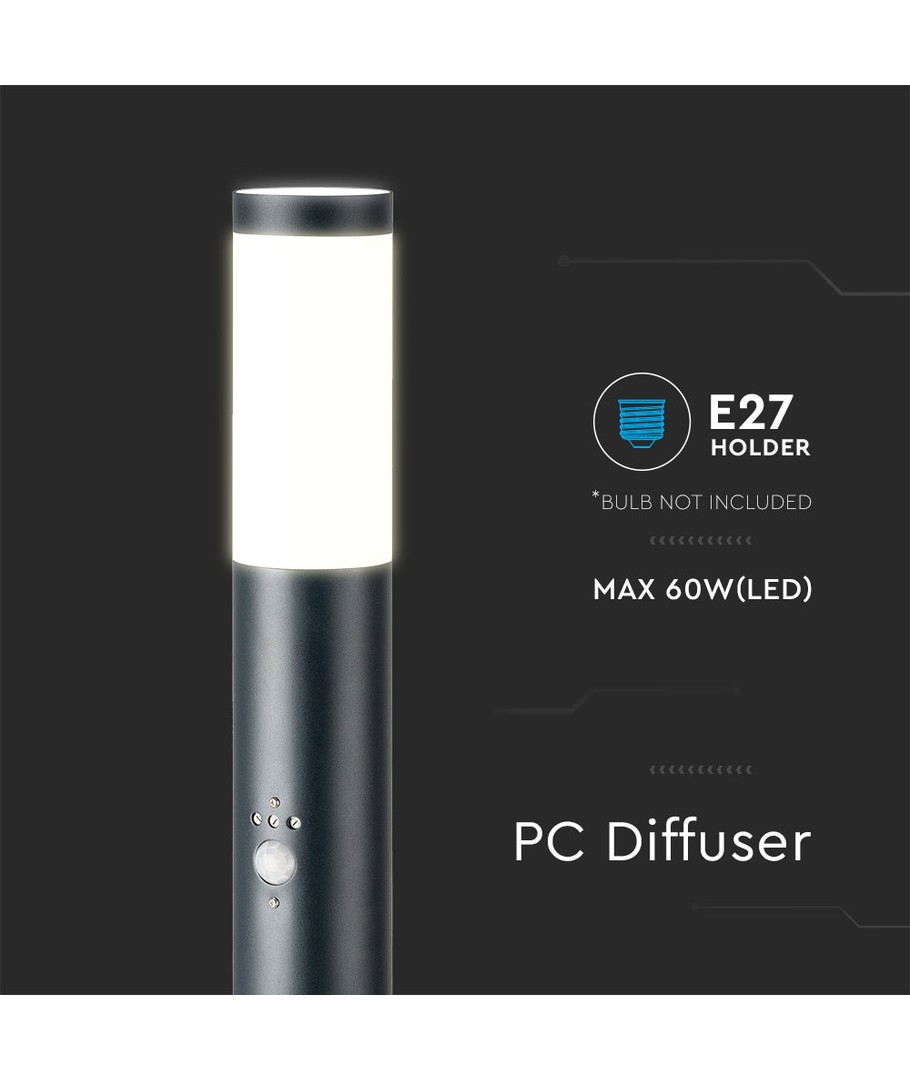 80 cm, IP44 utendørs, PIR sensor, E27 fatning, uten lyskilde