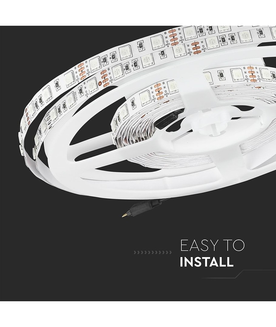 Transformér ditt rom med den praktiske og stilige V-Tac 7W/m RGB LED stripen, som gir deg uendelige muligheter for tilpasning og kreativ belysning.