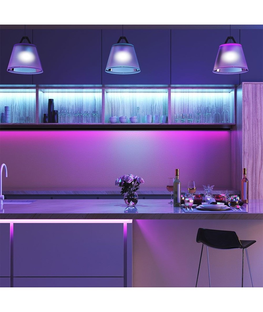 Med RGB-funksjonalitet kan du velge fra et bredt spekter av farger for å tilpasse belysningen etter behov og stemning. Stripen kan enkelt dimbare for å gi riktig lysstyrke, enten det er for en koselig kveld eller energiske festbilder.