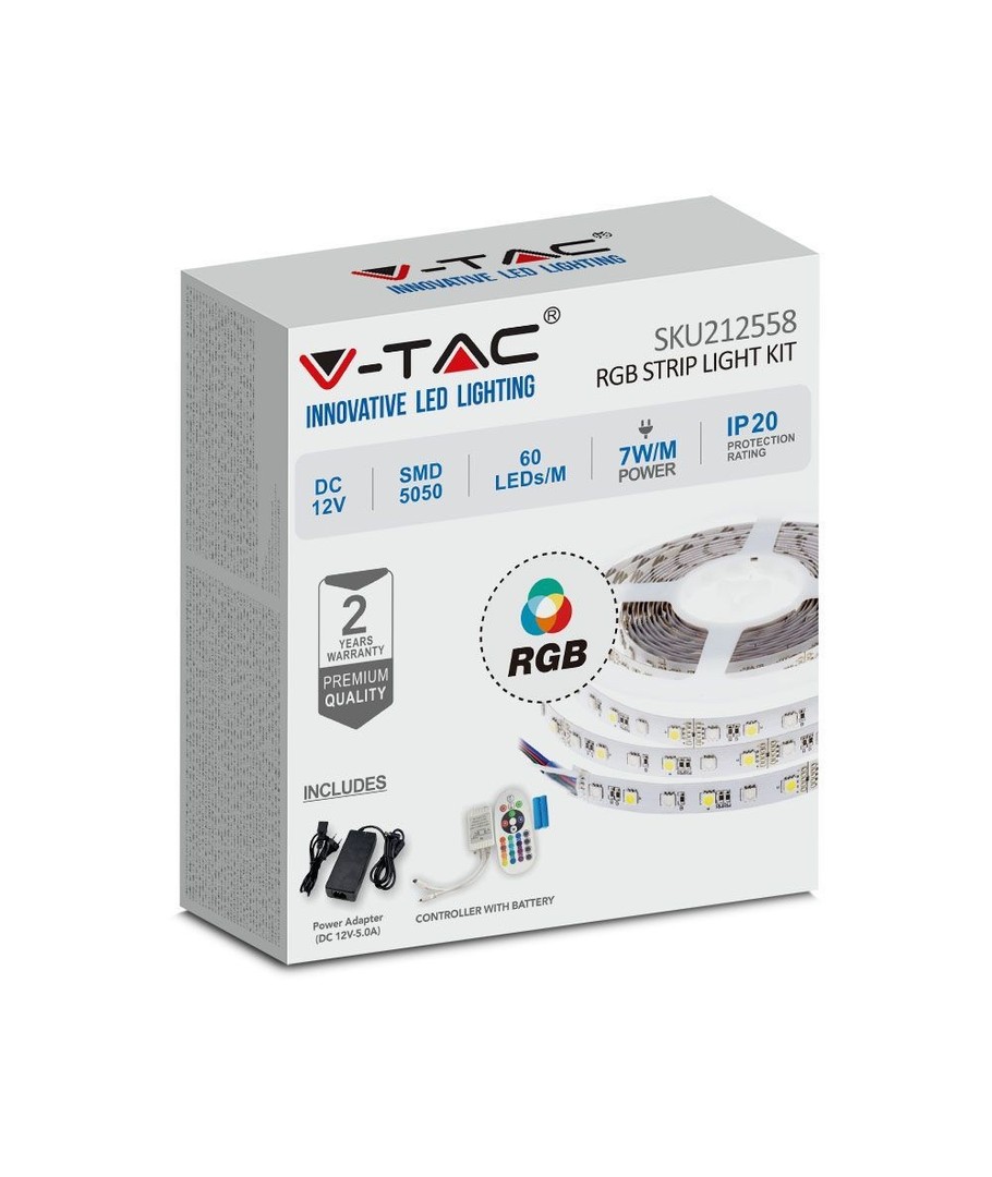Oppgrader belysningen din med et komplett sett fra V-Tac, og utforsk grensene for kreativt lysdesign med vår RGB LED stripe! Denne LED-stripen gir deg allsidigheten til et bredt spekter av farger og lysintensitet som virkelig kan forvandle stemningen i ethvert rom.