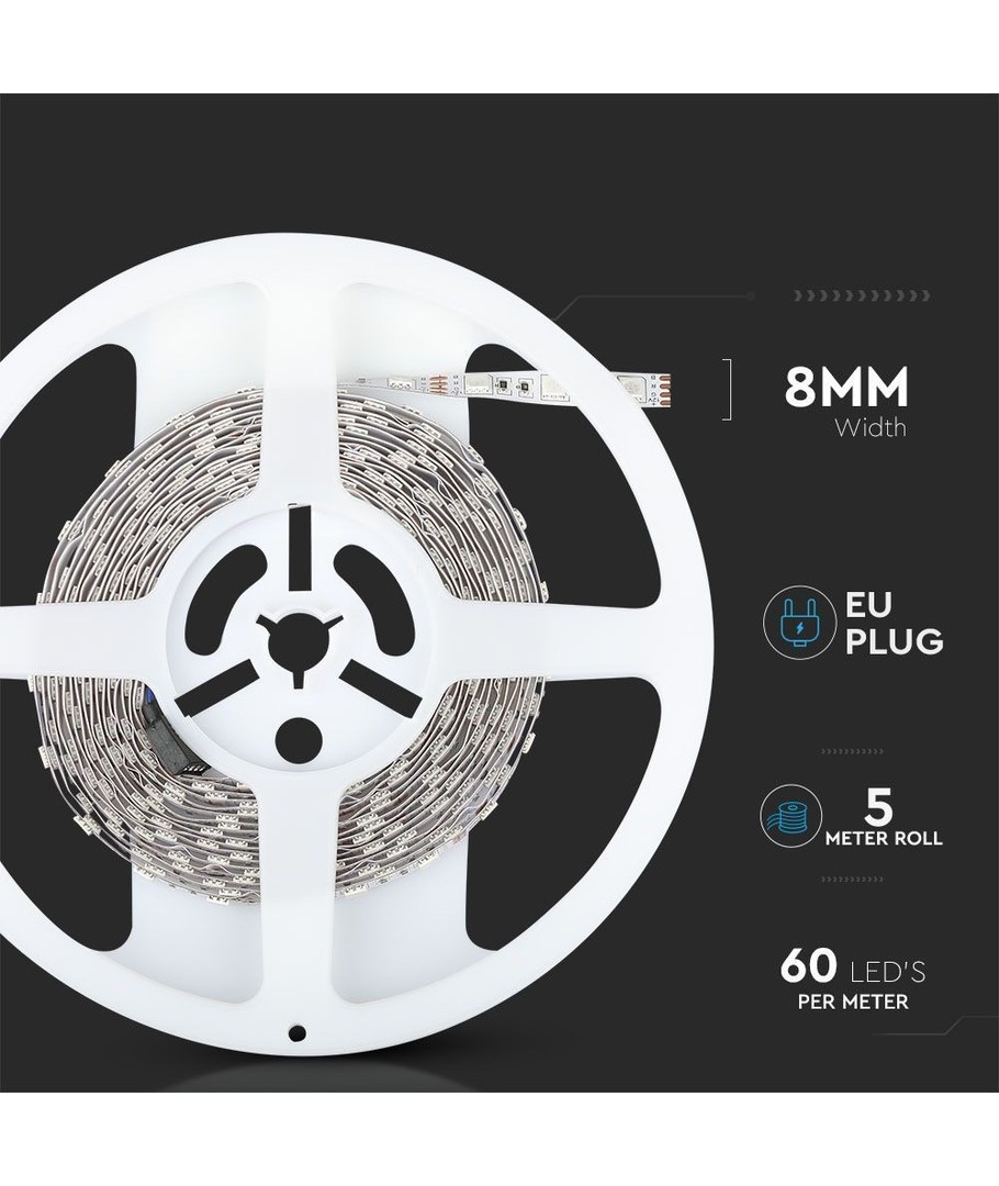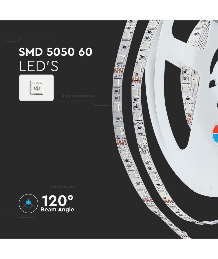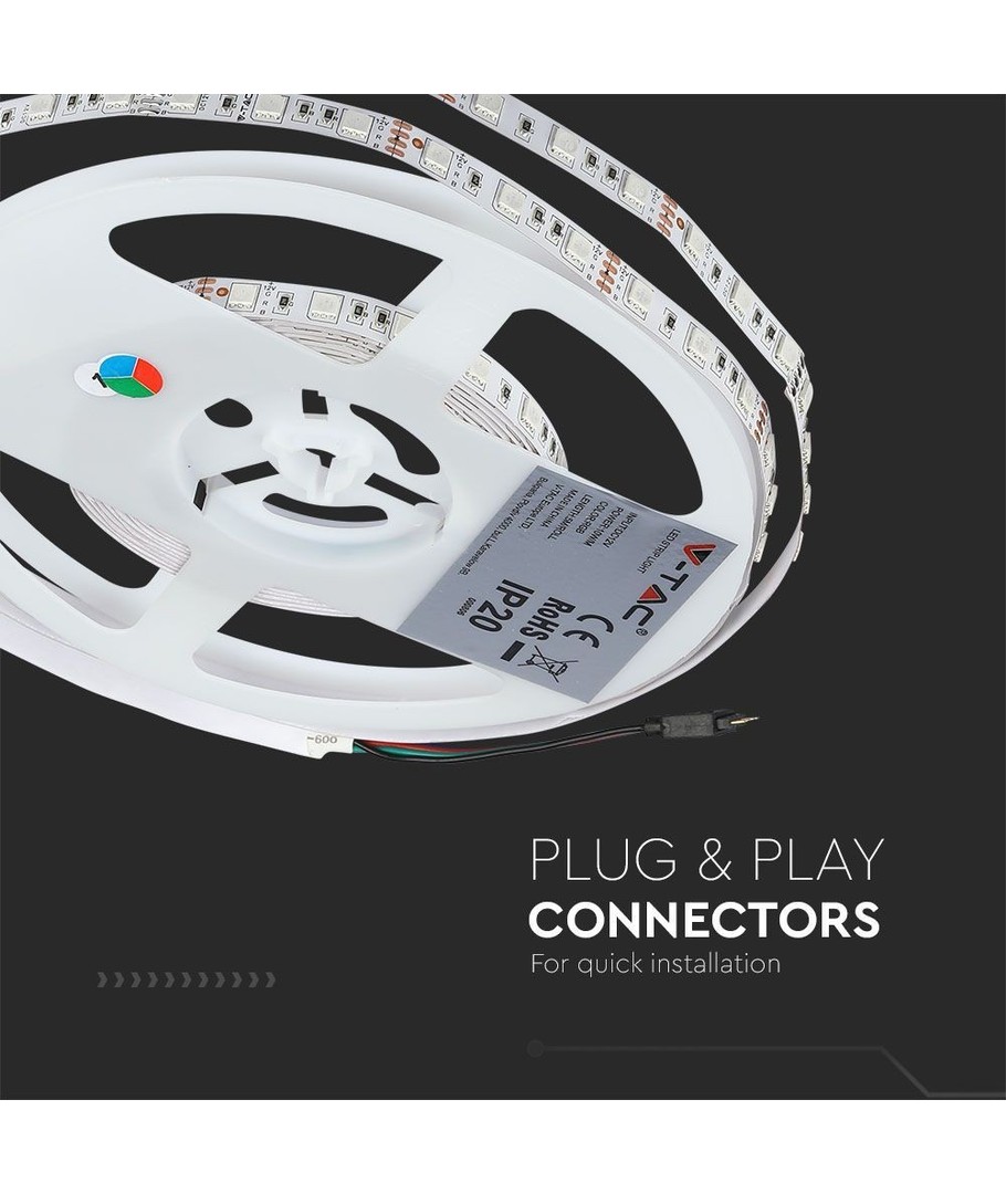 Gi liv til dine kreative belysningsprosjekter med V-Tac 7W/m RGB LED stripe, og oppdag hvor enkelt det er å skape et enestående miljø med lys.