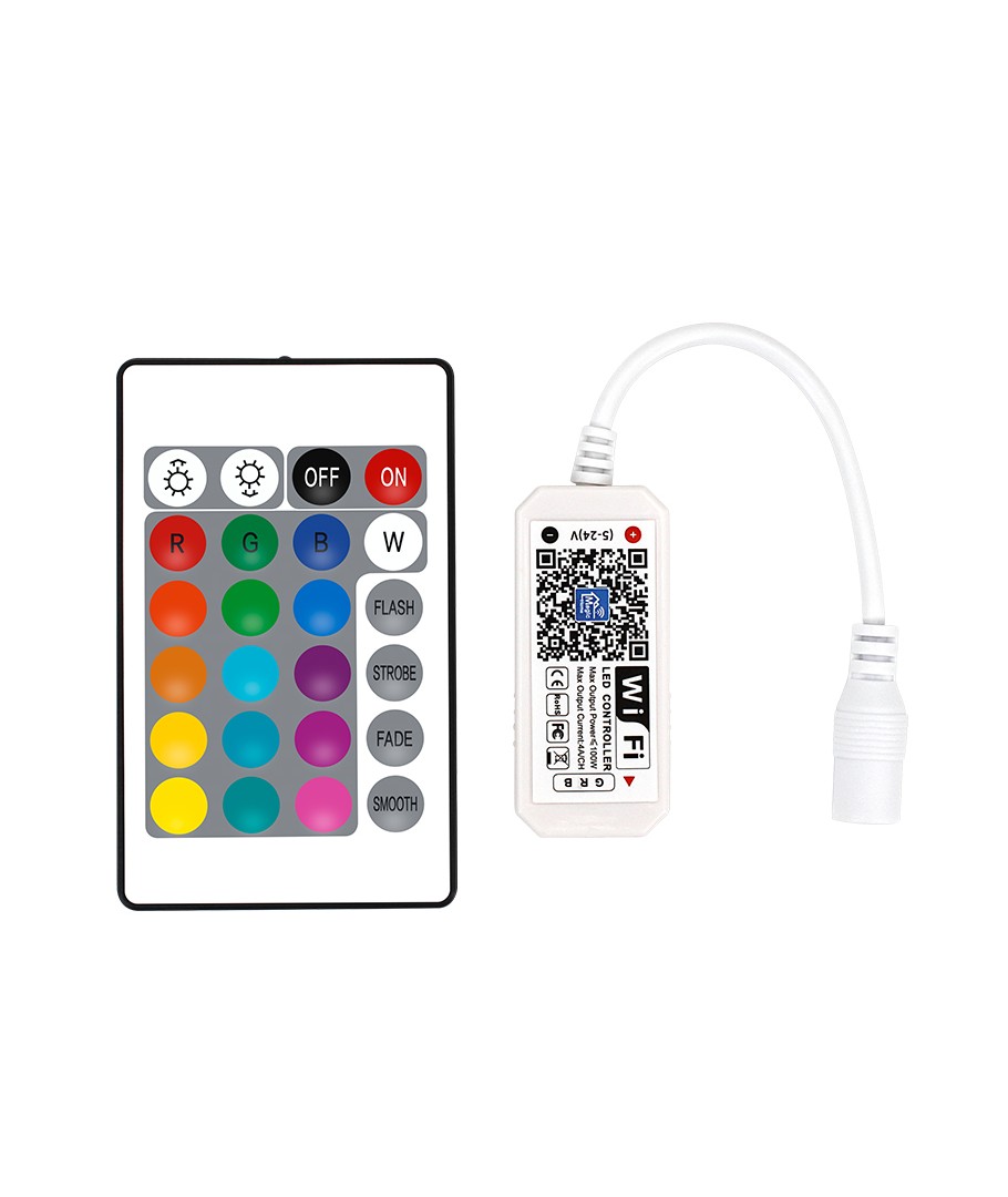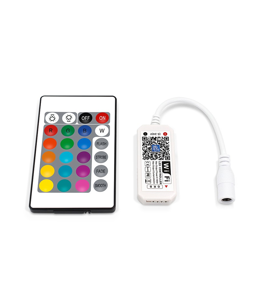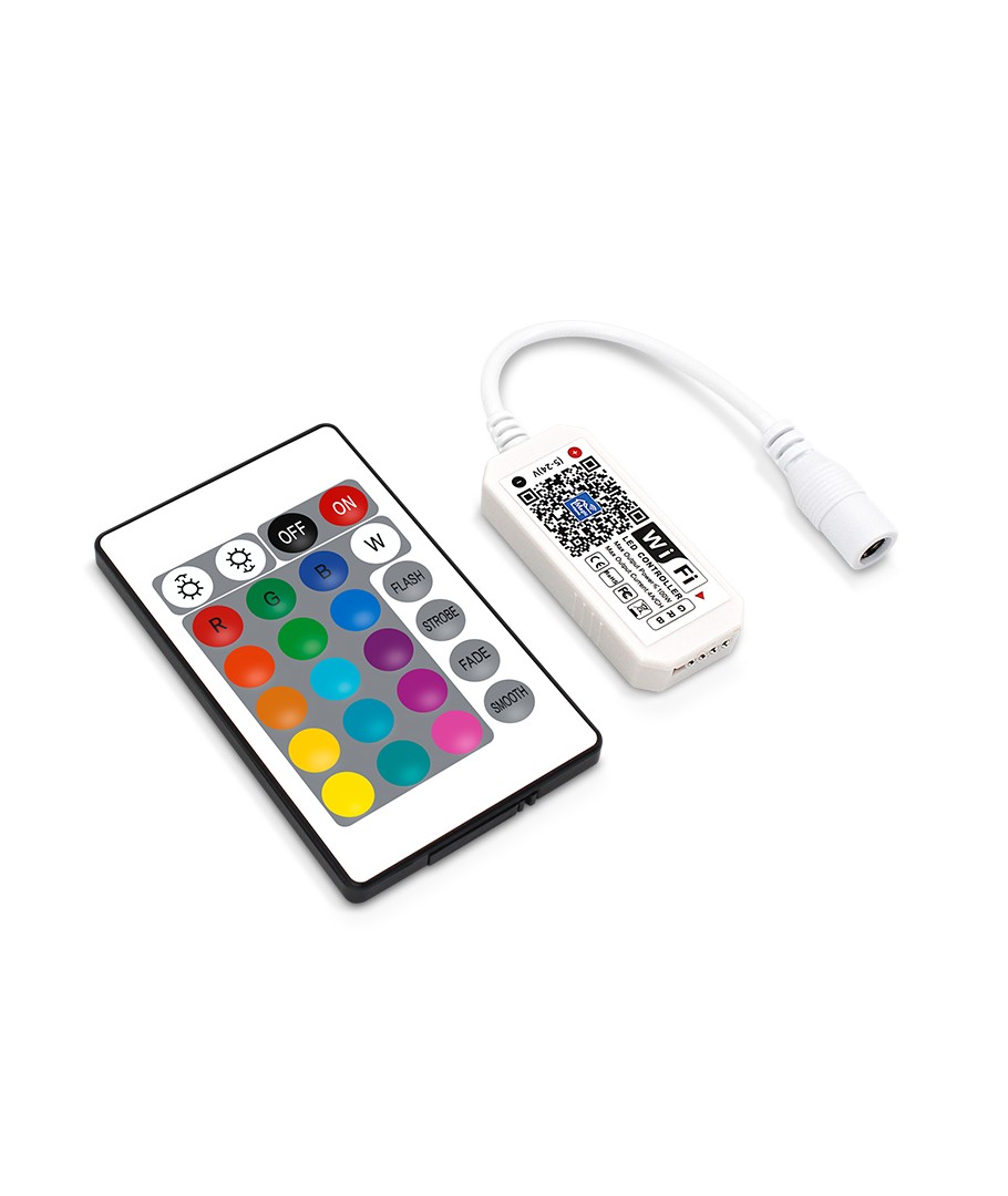 Leveres med WIFI-klar controller og infraröd styrd fjernkontroll.