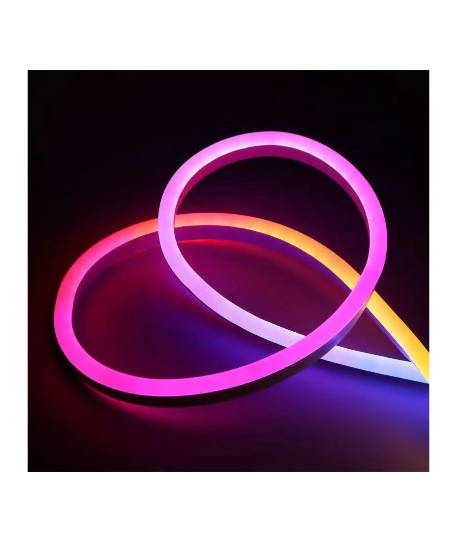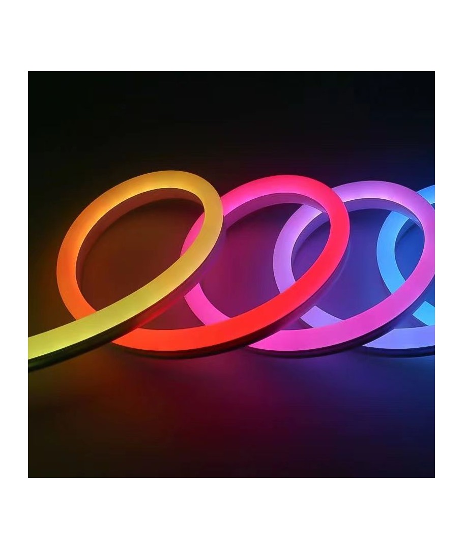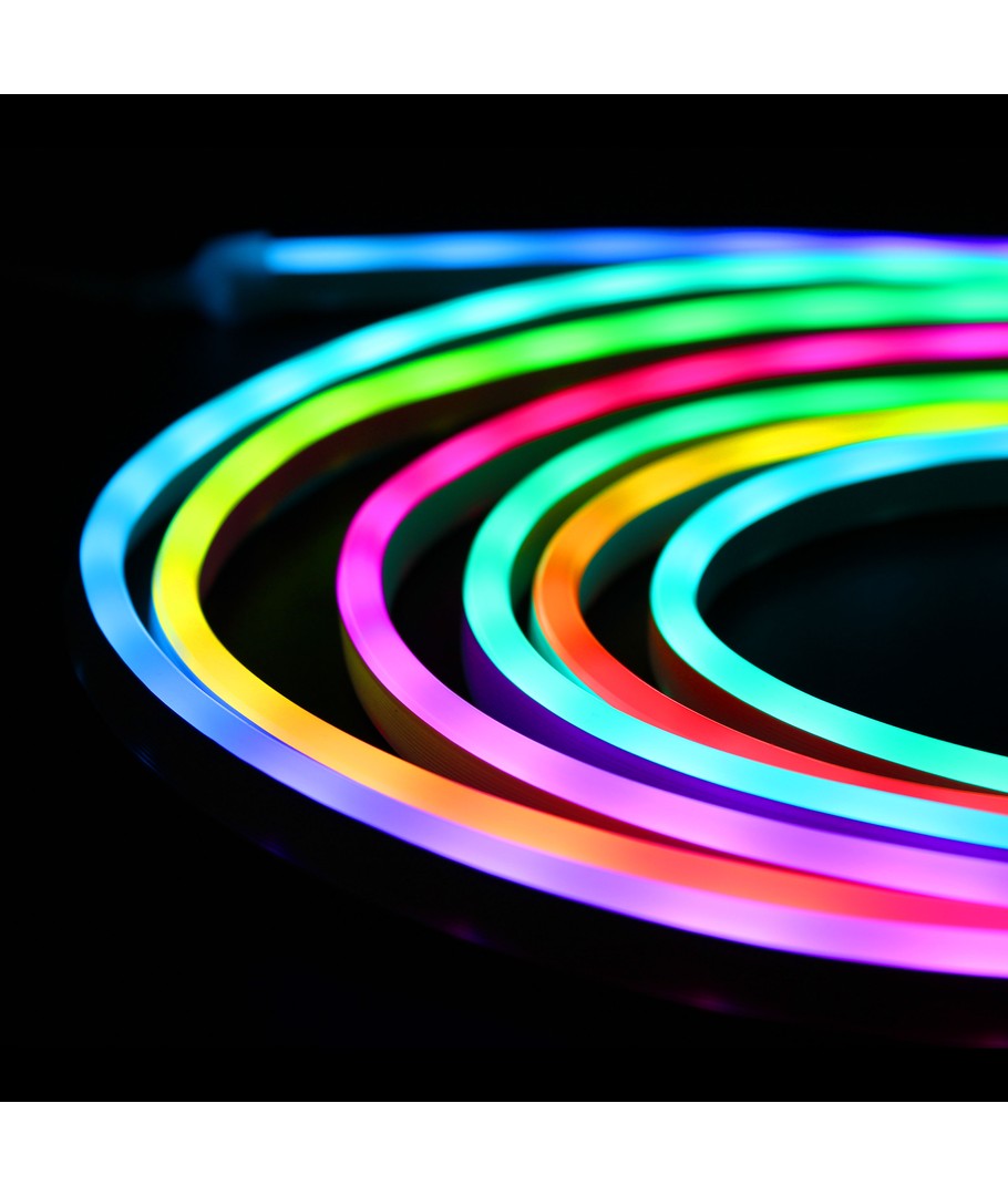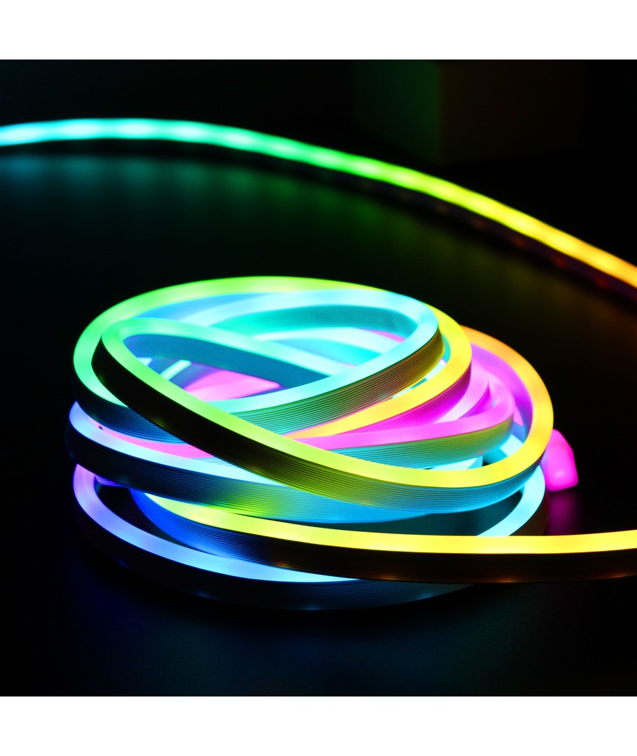 Opplev en verden av farger med vår 3W/m RGBIC 7x14 Neon Flex strip - en 5 meter RGBIC neon flex, som bringer lys og liv til ethvert rom med sitt dynamiske fargespill og fleksible design.