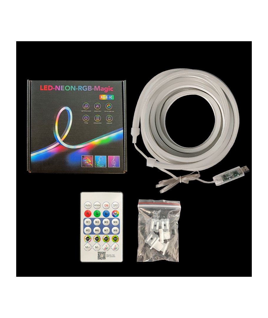 Forvandle rommet ditt med vårt 5m RGBIC Neon Flex komplett sett. Denne innovative belysningsløsningen gir deg en verden av farger rett ved fingertuppene.