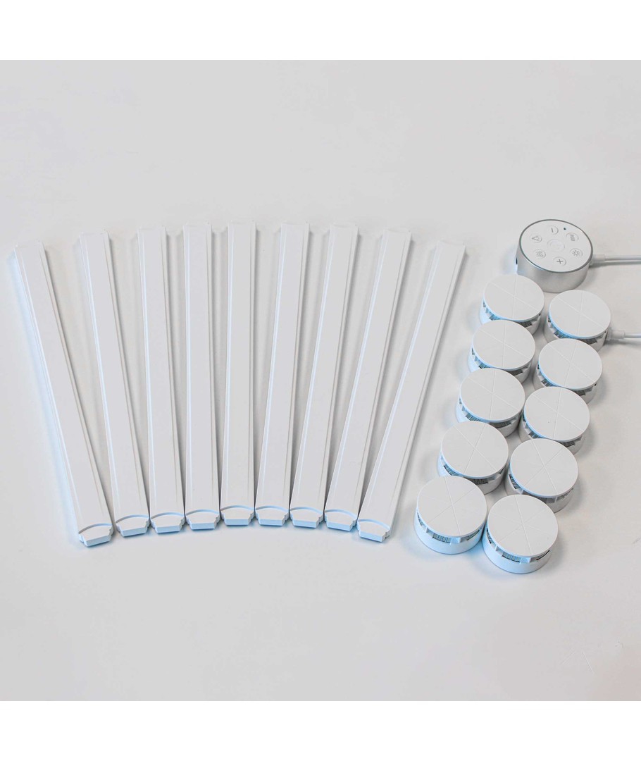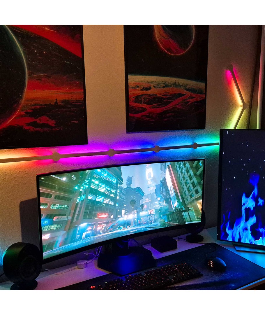 Skap en moderne og stemningsfull atmosfære med dette komplette settet av RGBIC lysstaver. Settet inkluderer 9 veggmonterbare lysstaver som enkelt kan tilpasses ditt hjem eller kontor for å sette et personlig preg på interiøret.