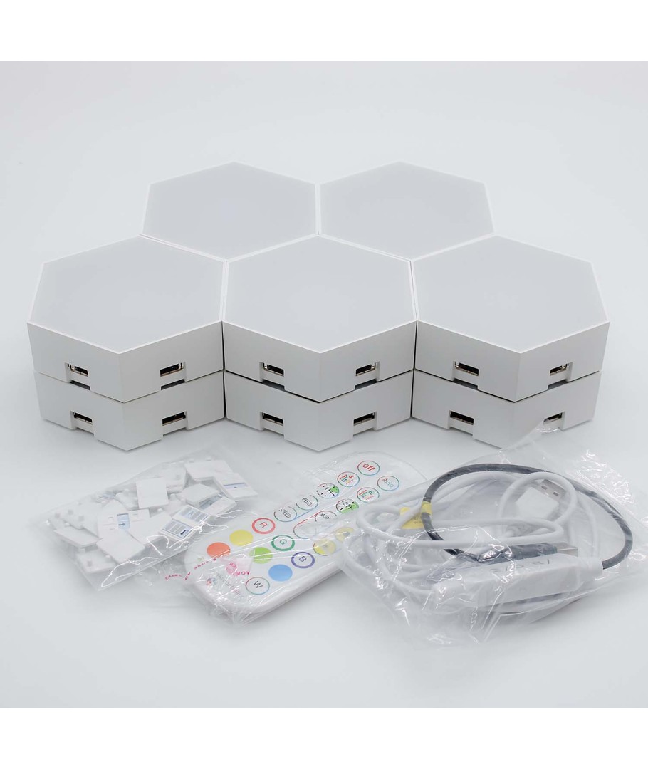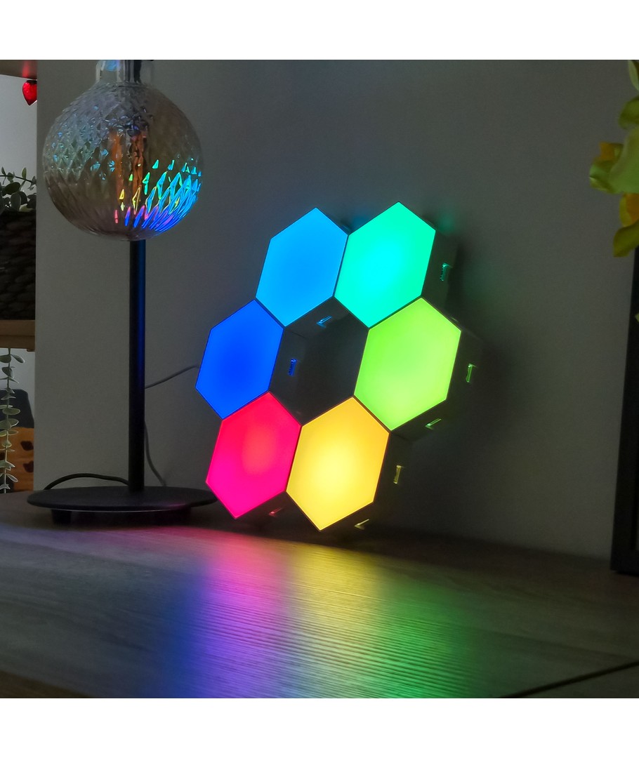 Forvandle ethvert rom med dette fascinerende RGBIC Hexagon Vegglys 10-sett. Disse allsidige belysningselementene gir en unik og moderne stil til hjemmet ditt, samtidig som de skaper en stemningsfull atmosfære.