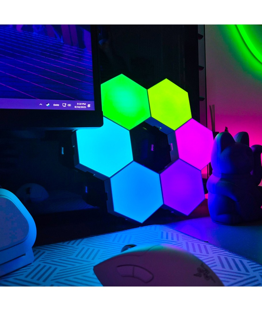 Opplys gamingoppsettet ditt med RGBIC Hexagon Vegglys – det ultimate lyset som forvandler rommet ditt til en RGB-drøm!