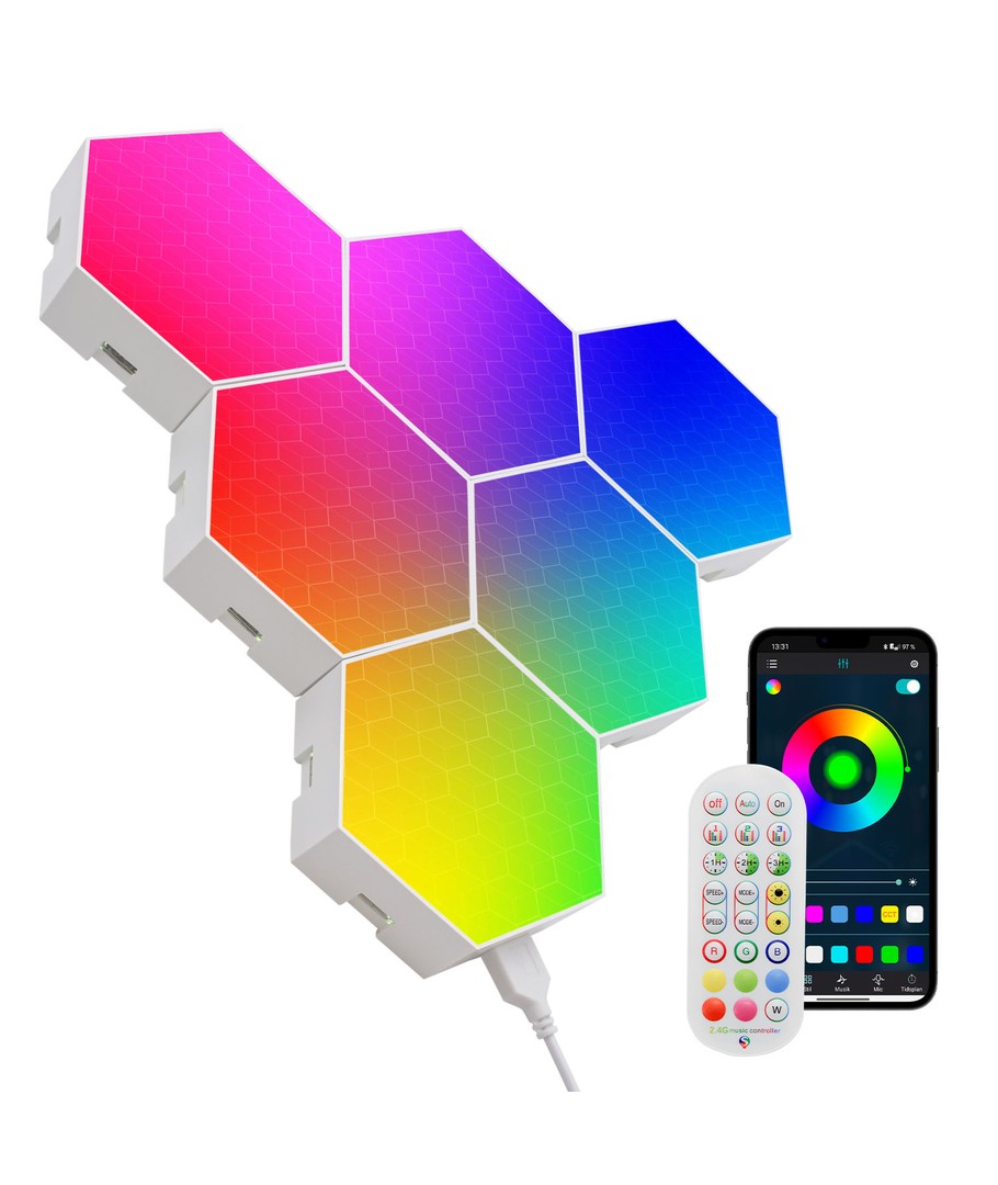 RGBIC Hexagon Vegglys er det perfekte valget for deg som ønsker å tilføre en moderne touch til hjemmet ditt, samtidig som du opprettholder full kontroll over lysmiljøet ditt.