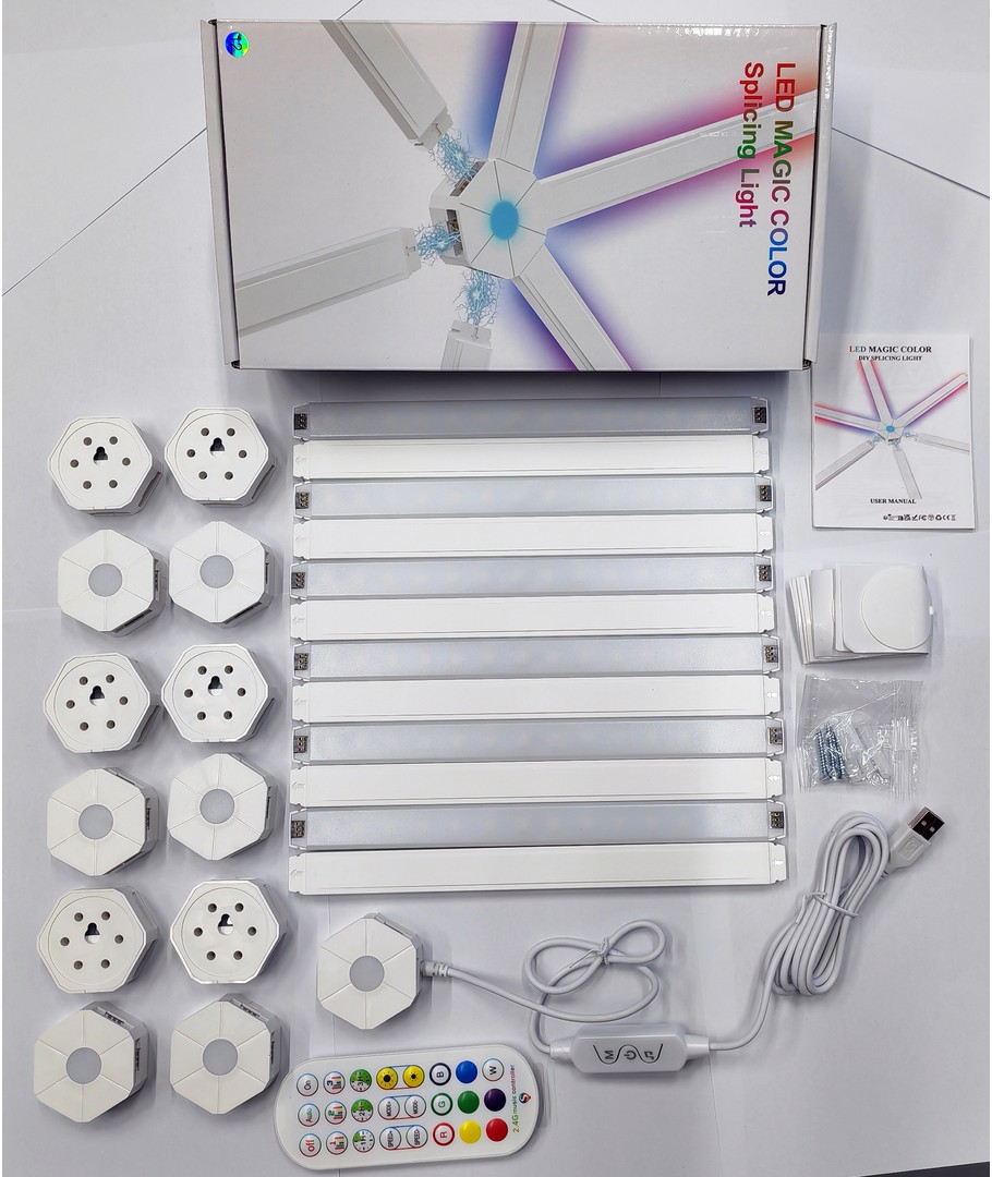 Hexa-Light RGBIC komplett sett er den perfekte løsningen for å transformere rommet ditt med dynamisk og fargerik belysning. Med 6 RGBIC lyslister som kan tilpasses og styres via Bluetooth-app eller kontroller, får du uendelige muligheter for å skape den rette atmosfæren.