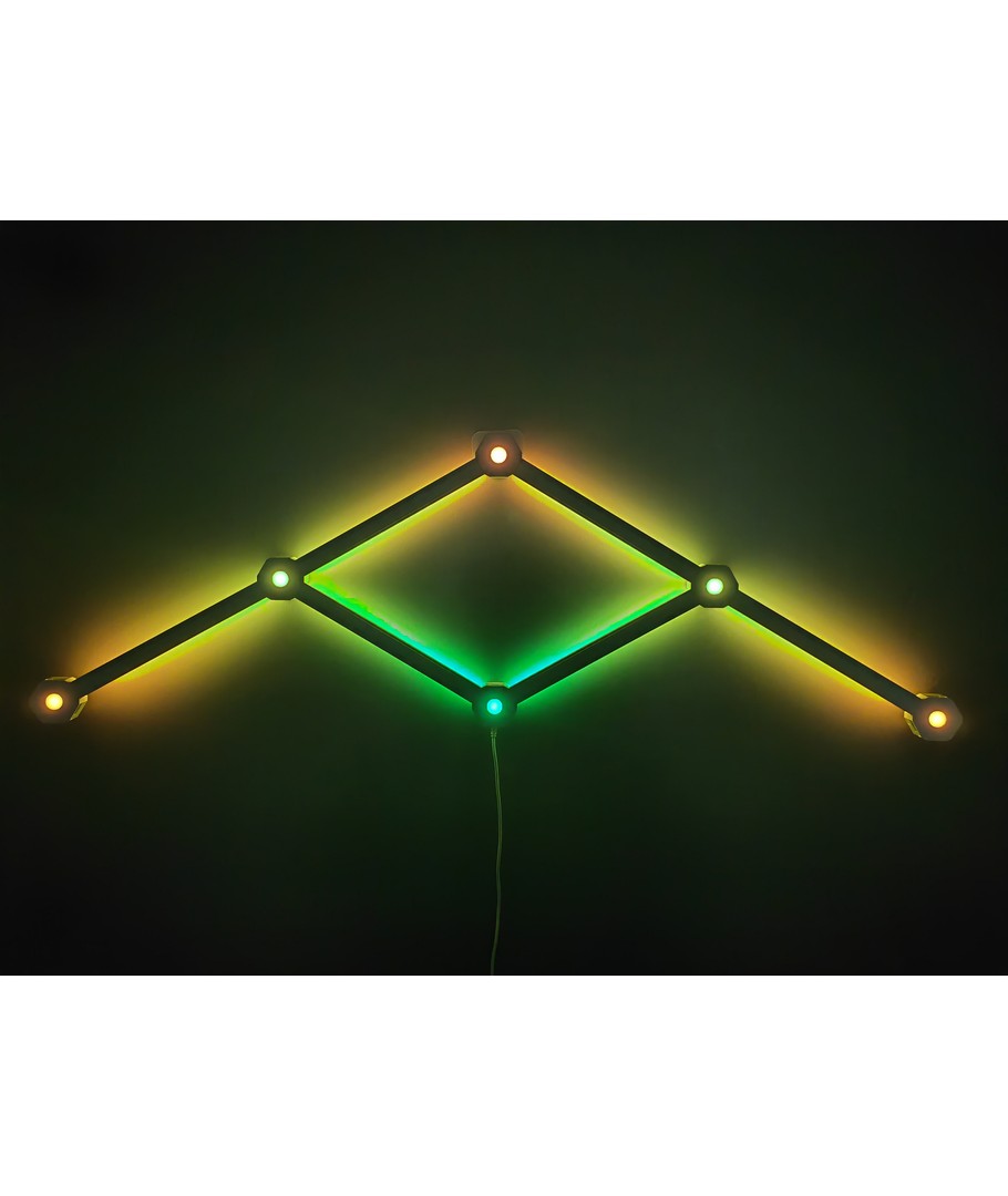 Med Hexa-Light RGBIC komplett sett kan du skape en unik atmosfære i ethvert rom med seks innovative lyslister som gir fargerik og levende belysning.