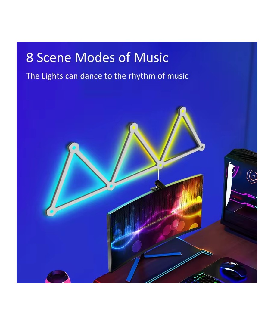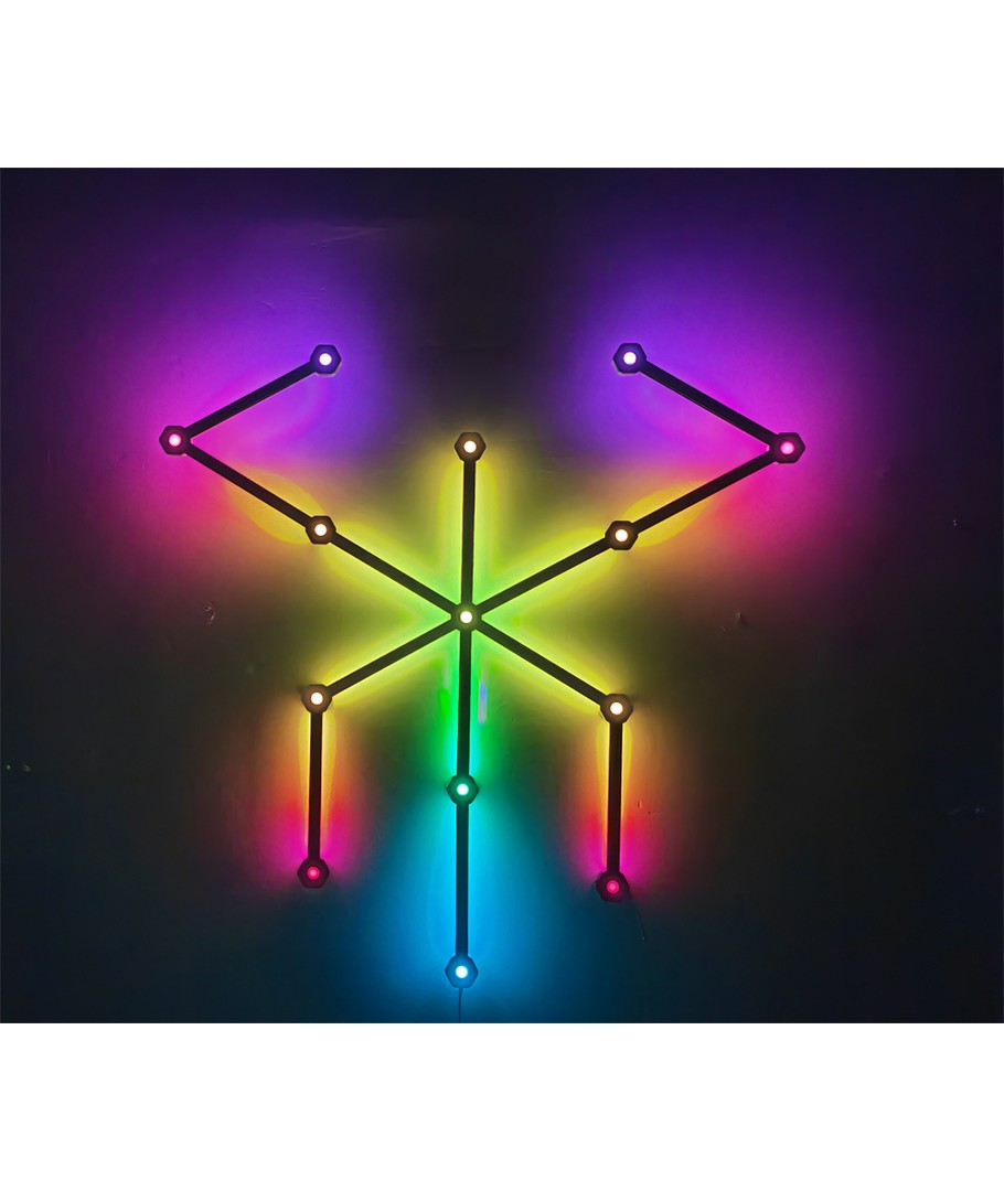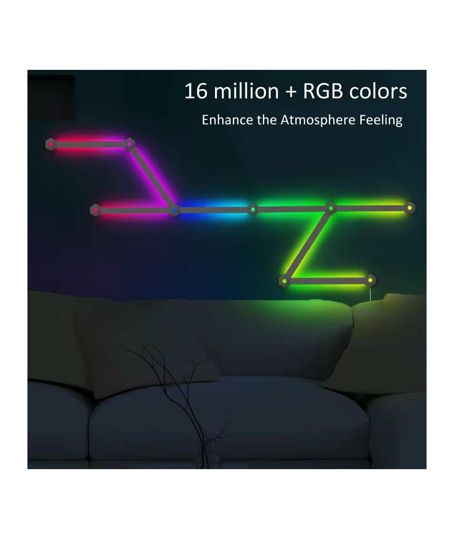 Skap den perfekte atmosfæren i hjemmet ditt med Hexa-Light RGBIC, et komplett sett med 9 lysstaver som enkelt kan veggmonteres. Med dette belysningssettet kan du sette ditt personlige preg på rommet ved hjelp av en rekke funksjoner som gir deg full kontroll over lyssettingen.