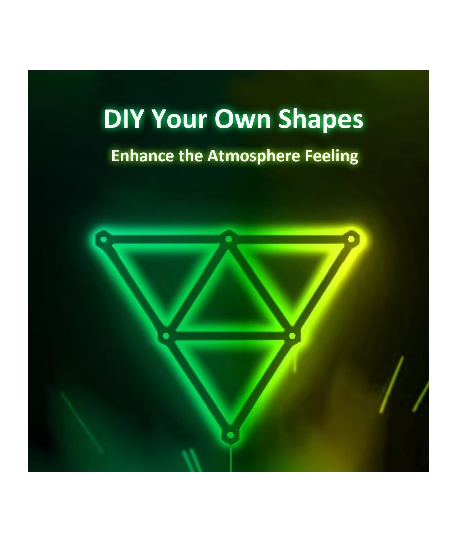 Hexa-Light RGBIC er mer enn bare belysning; det er en invitasjon til kreativ frihet. Uansett om du ønsker å skape et levende festlys, en beroligende nattstemning eller fremheve spesielle hjørner i rommet, tilbyr dette settet uendelige muligheter.