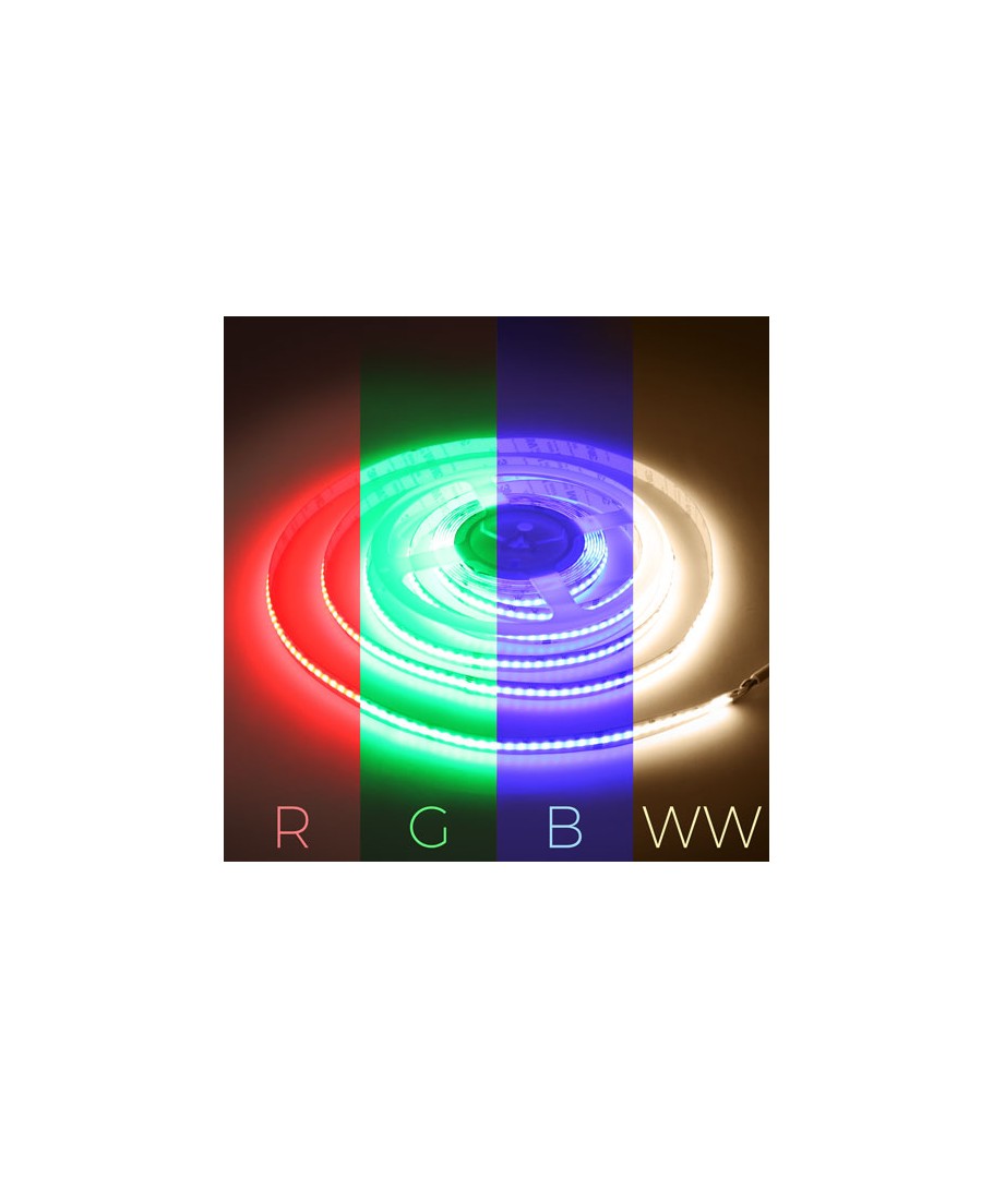 Vår 5m RGB+WW COB-LED stripe gir deg muligheten til å eksperimentere med lys og farger, alt mens du opprettholder høy