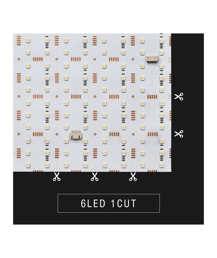 Opplev ekstra høy lyskvalitet med vår 25x25 sammenleggbare RGB+NW LED ark. Denne LED-stripen leverer en imponerende lysstyrke på 900 lumen/meter og har en lysspredning på 120 grader, noe som sikrer en jevn fordeling av lyset i rommet.