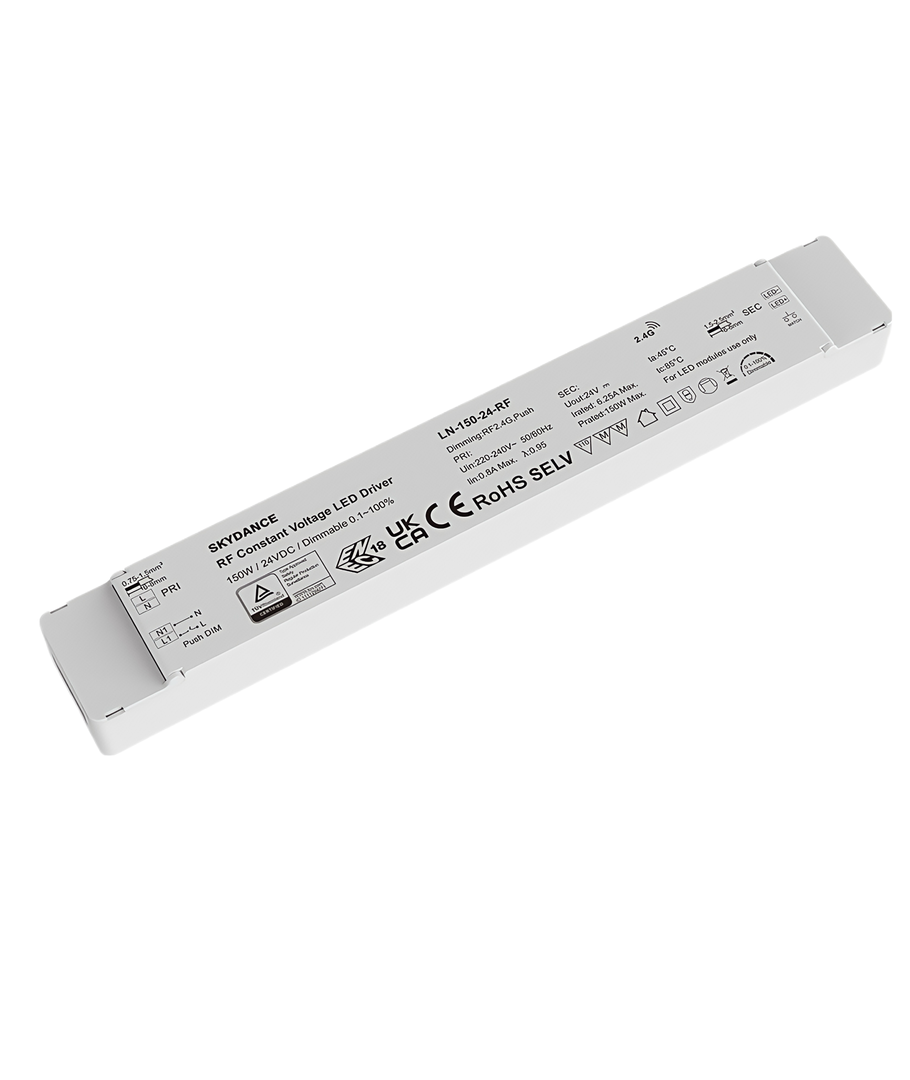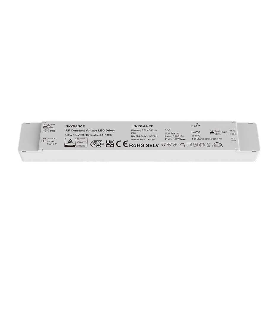 En av de største fordelene med denne strømforsyningen er dens dimmefunksjon. Du kan enkelt justere lysstyrken med RF-teknologi eller bruke push-dim funksjonen for å tilpasse belysningen til dine behov.