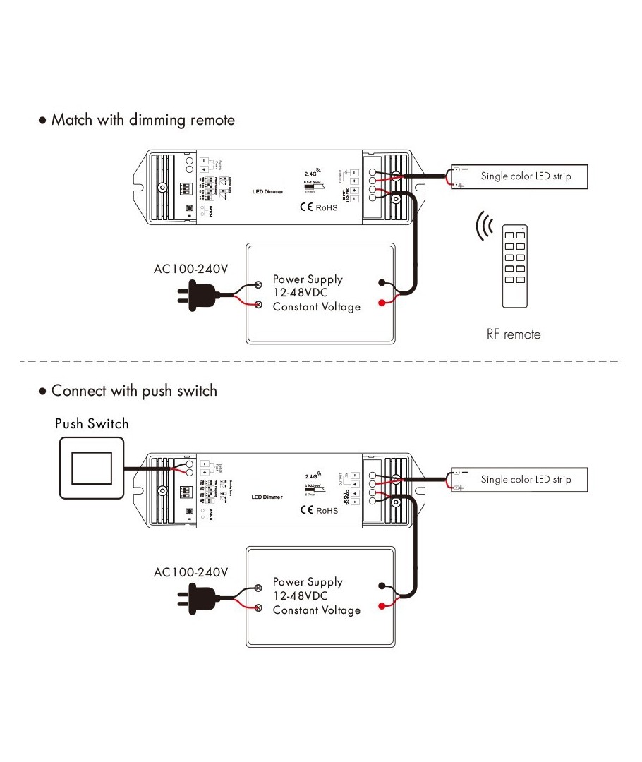 Opplev enkel og pålitelig lysstyring med en trådløs LED dimmer designet for å gi deg fleksibiliteten du trenger i ditt hjem eller på kontoret. Denne dimmeren er ideell for både 12V og 24V systemer, med evnen til å håndtere opptil 180W ved 12V og 360W ved 24V.