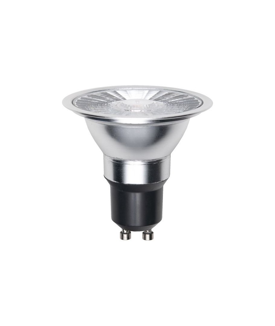 GU10 ES63 8W dimbar LED-pære - effektiv belysning med klart glass og varmhvitt lys.- Lysstyrke: Avgir 510 lumen, noe som gir et kraftig, varmhvitt lys ved 2700K.
