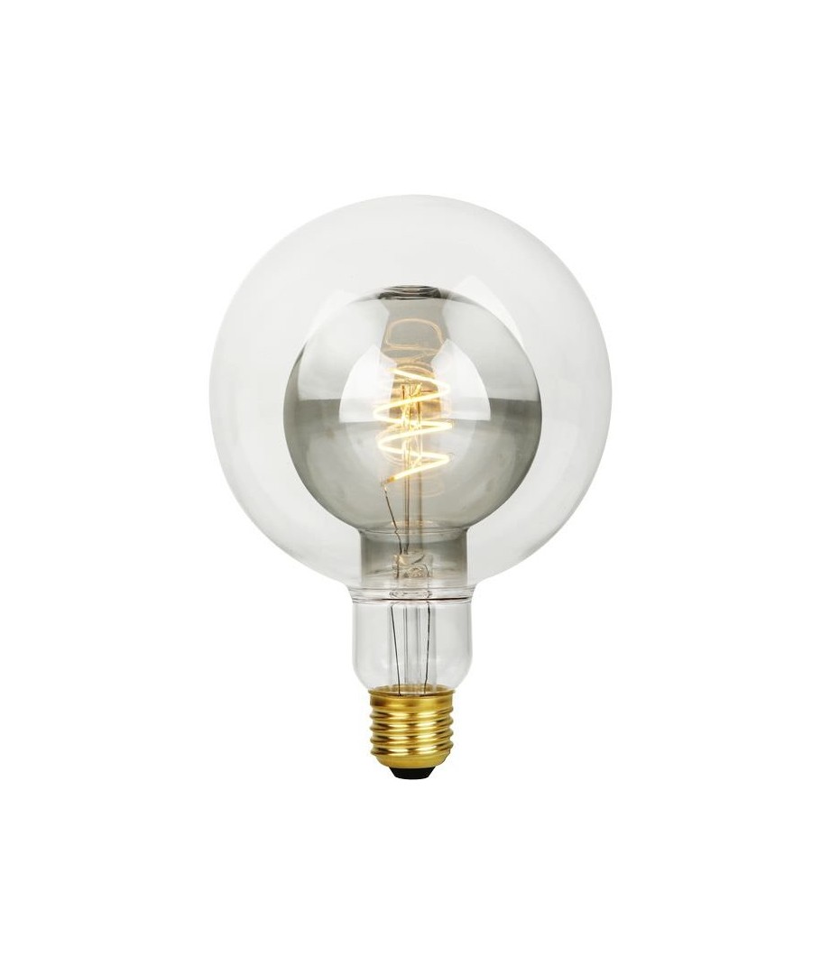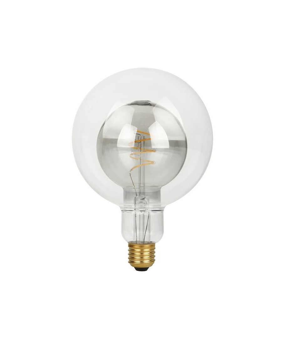 E27 5,5W LED Filament Double Globe G125 er en elegant og energieffektiv lyskilde med røykfarget glass, som passer perfekt til dekorative formål.