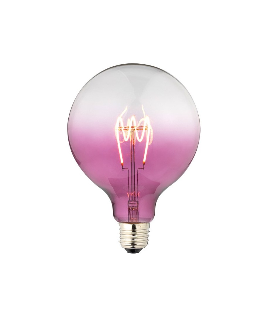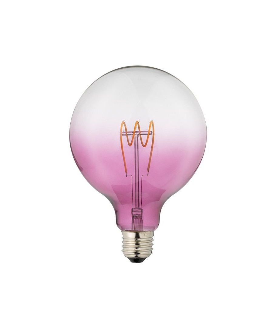 E27 4W dimbar LED filamentpære - G125, Flex Globe, lilla glass, 140lm gir stemningsfullt lys i hjemmet.