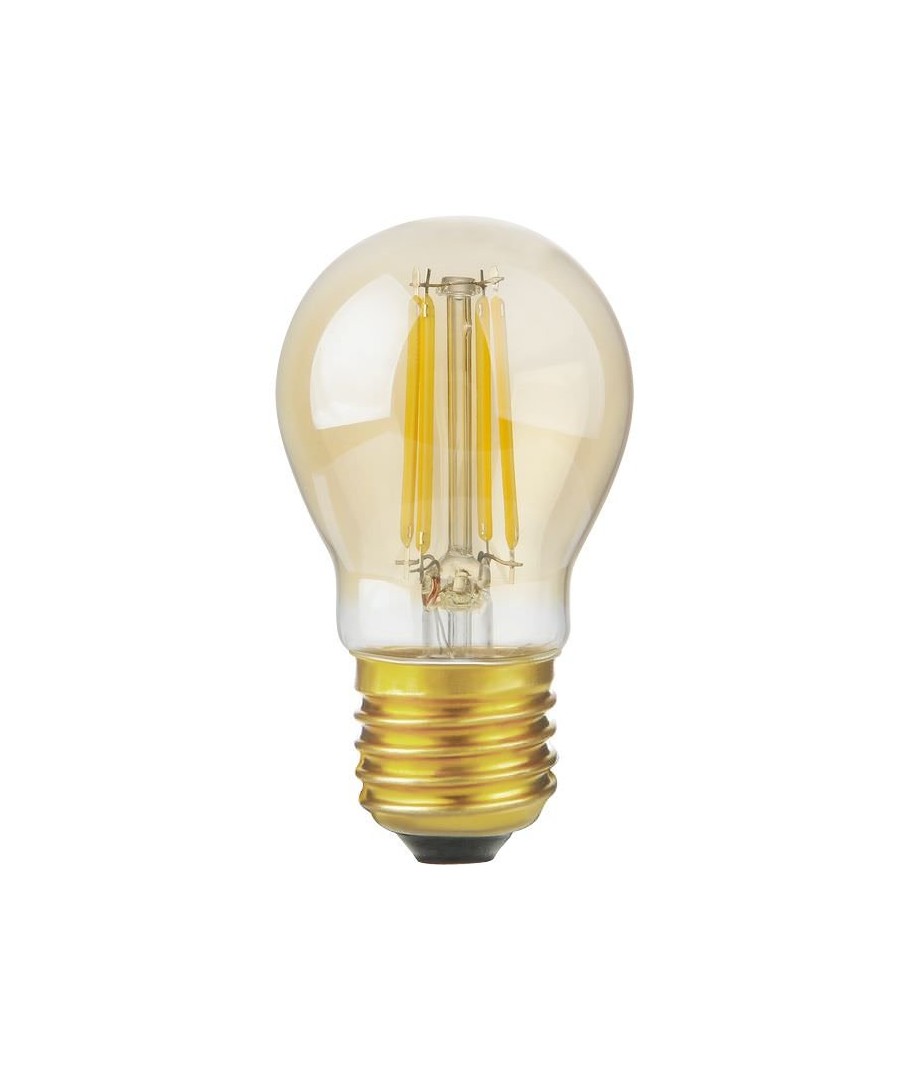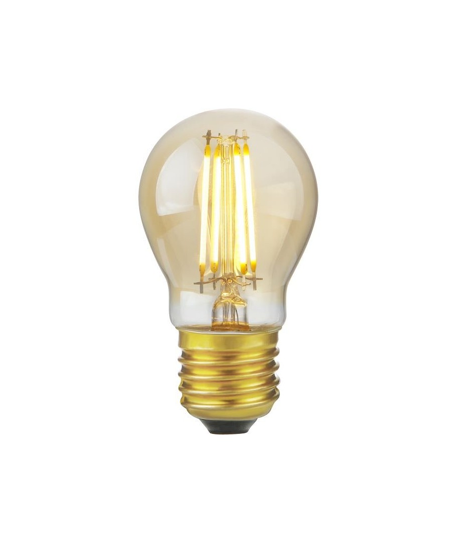 E27 4,7W dimbar LED kronepære kombinerer effektivitet med et unikt design i gyllent glass, ideell for hyggelig belysning.