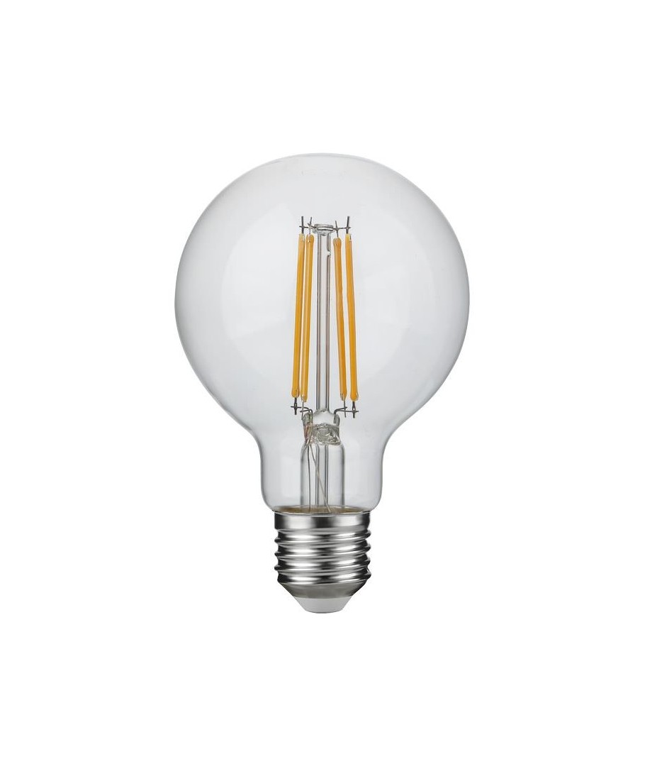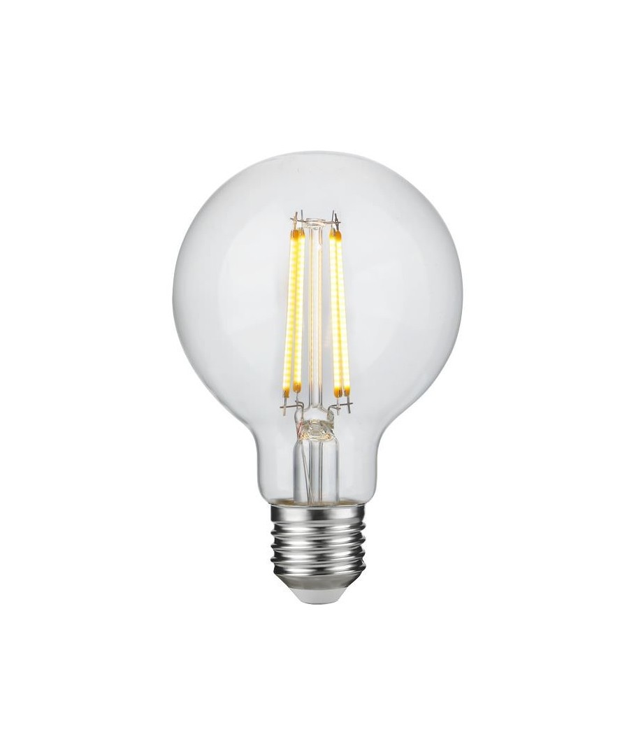 Ny E27 4,7W dimbar LED globepære - G80, filament, 2500K, 470lm, klart glass Utvid