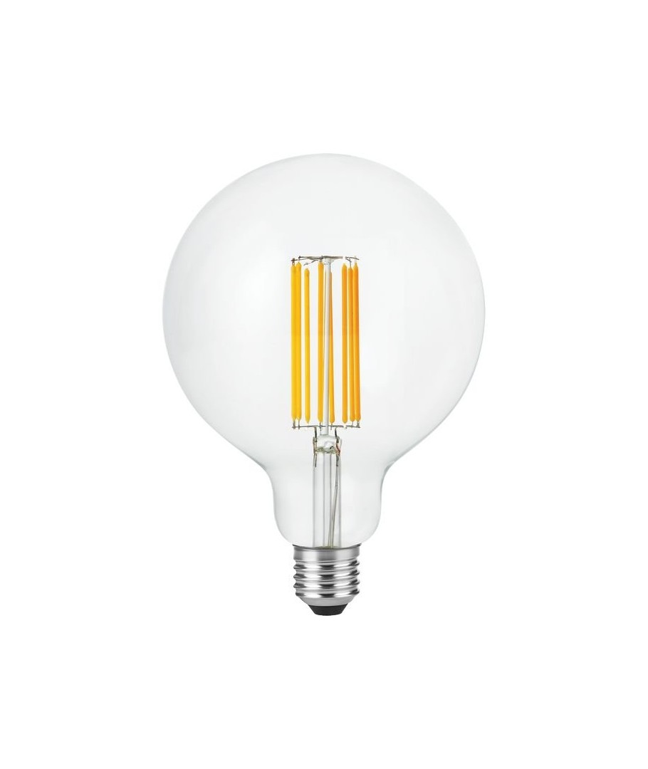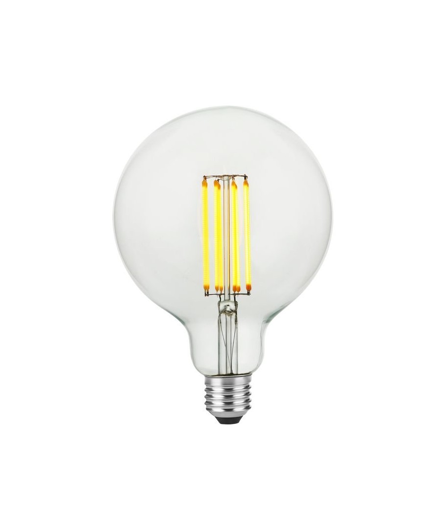 E27 7W dimbar LED globepære - G125, filament, 2200K, 600lm med klart glass gir en varm belysning.- Lysstyrke: 600 lumen, som sikrer en sterk og klar belysning.