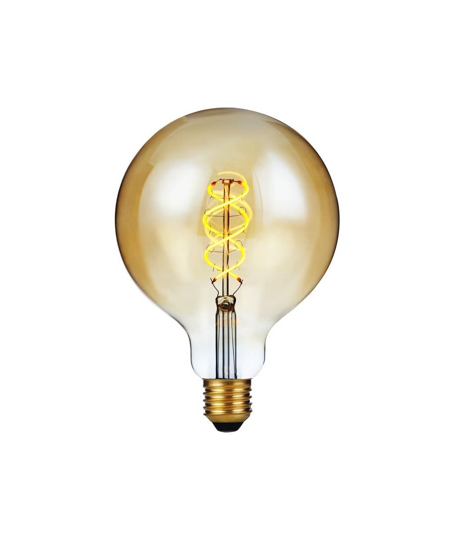E27 5W dimbar LED filamentpære tilbyr stilig belysning med et varmt, gyllent skjær.