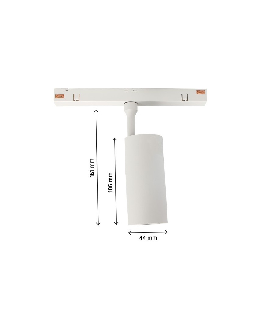 Montert på et profesjonelt og robust design, krever denne skinnespoten en tilkobling til 48V DC forsyning. Den er designet med integrert lyskilde for enkel installasjon, har dimensjoner på 178 x Ø44 mm og er klassifisert som IP20, noe som betyr at den ikke er vannbestandig.