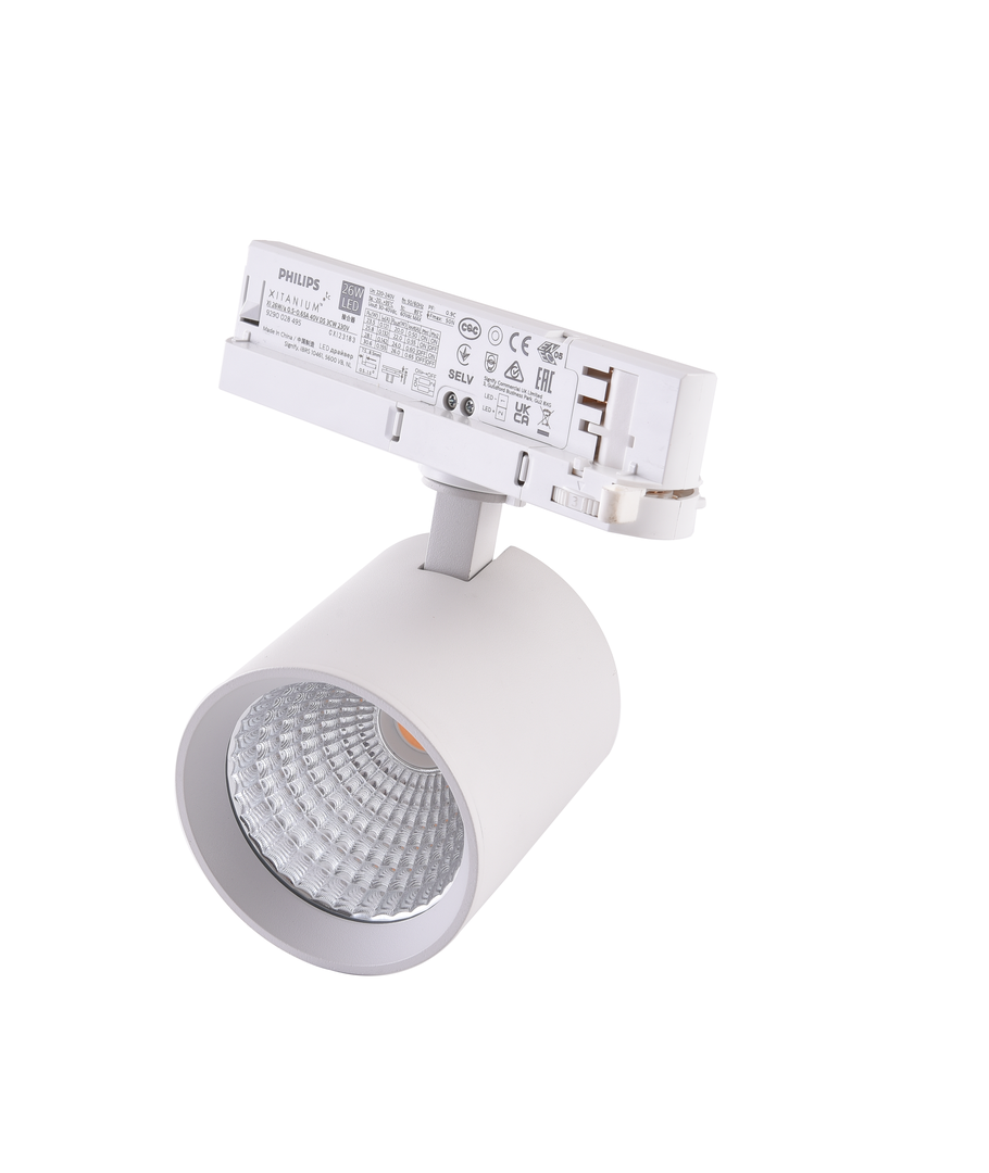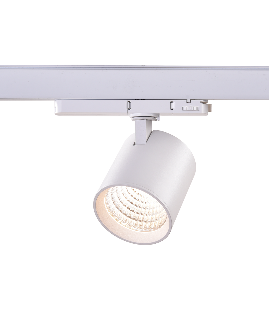 Elegant LED skinnespot i hvitt hus til 3-faset skinnesystem med innebygd driver i selve spotten.