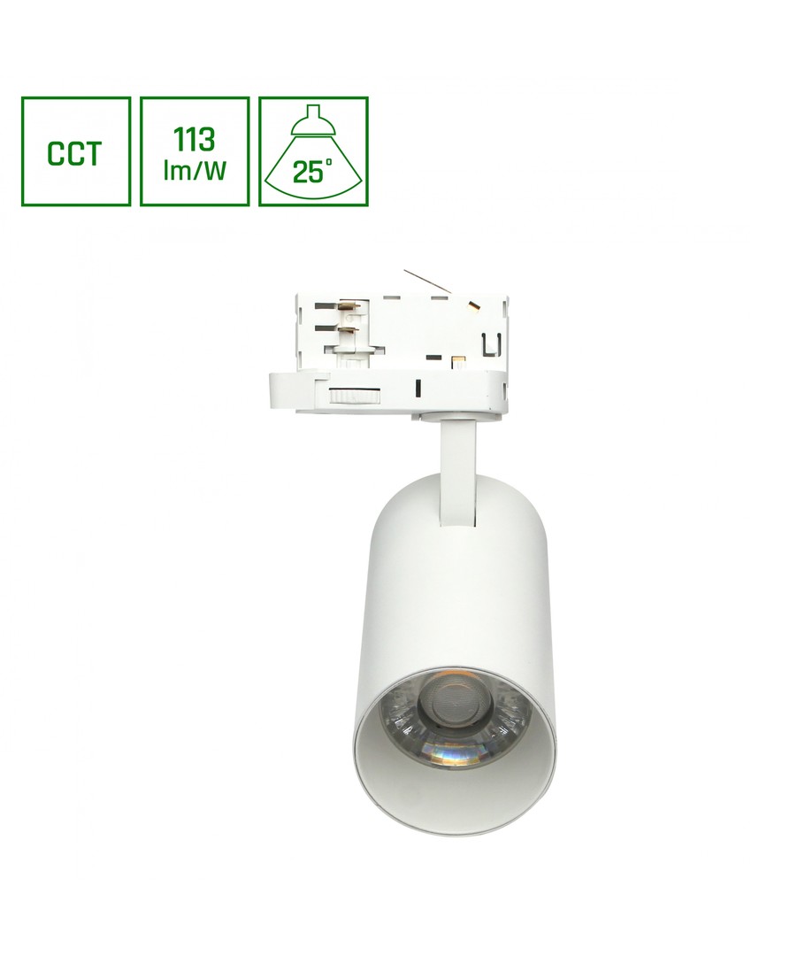 Den hvite 24W skinnespot 3i1 fra Spectrum er en allsidig og effektiv belysningsløsning, ideell for både kommersielle og private rom.