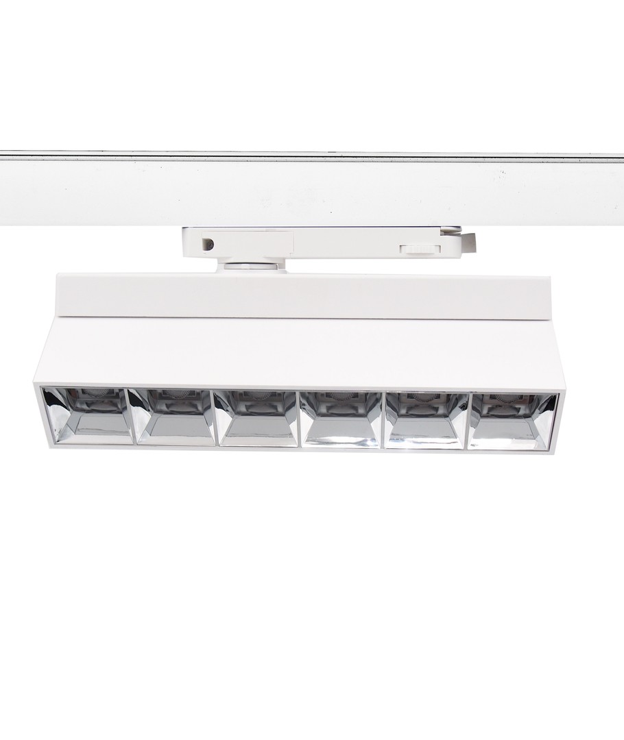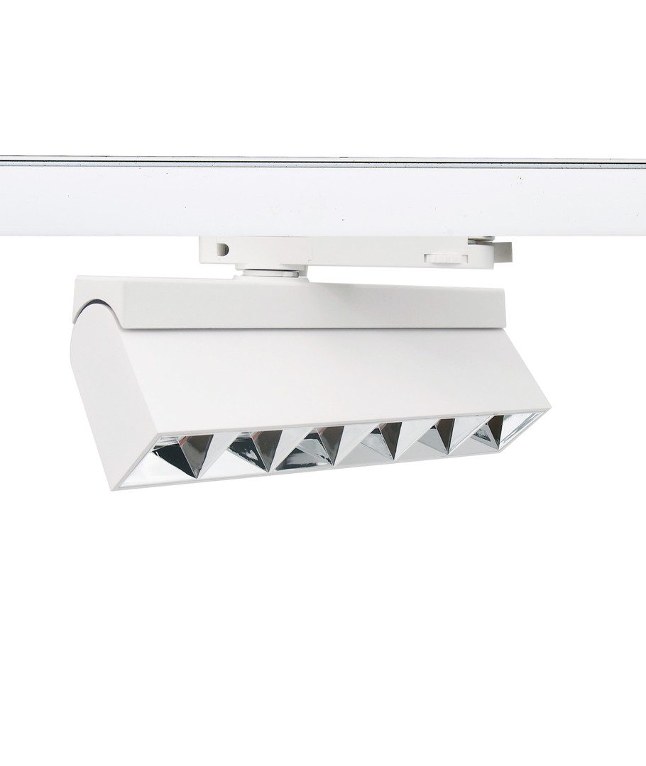 Lysskinnen er konstruert for å gi et fokusert lys på 45 grader, noe som sikrer en presis og kontrollert belysning. Dette gjør den spesielt godt egnet for målrettet belysning i for eksempel butikker eller gallerier.