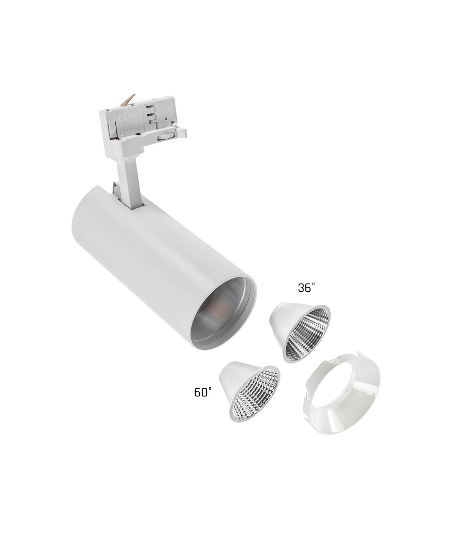 Denne 3-fasede skinnespoten kombinerer funksjonalitet med estetikk, og tilbyr en fleksibel belysningsløsning for ethvert rom. Med en effekt på 25W og en lysstyrke på 2600 lumen, gir den kraftig og fokusert belysning som kan tilpasses spesifikke behov.