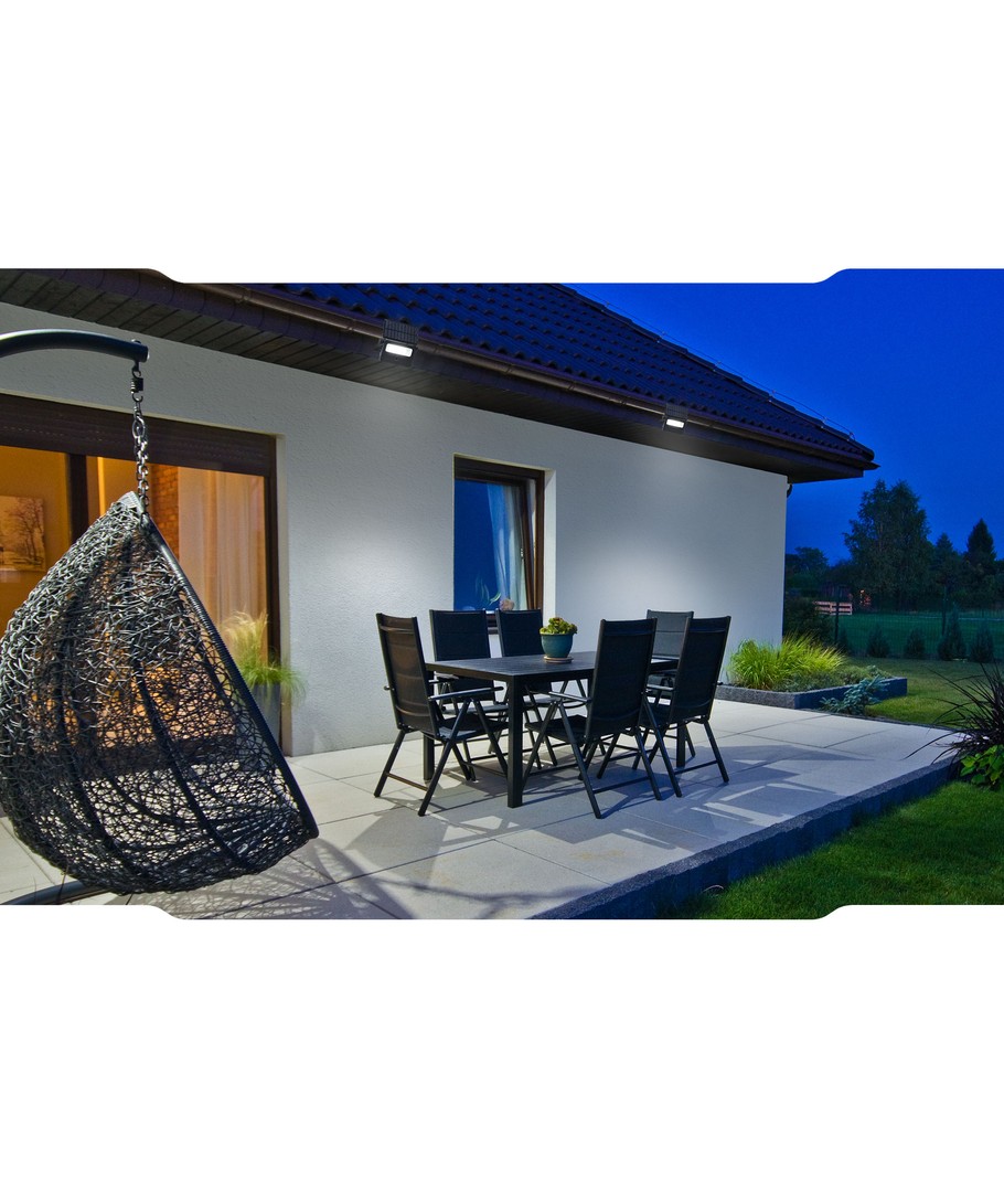 Med dimensjoner på 145 x 30 x 175 mm, er denne lyskasteren kompakt nok til å passe inn i de fleste utendørs oppsett. Den kommer med en integrert lyskilde, så det er ingen behov for ekstra installasjon av lyspærer.