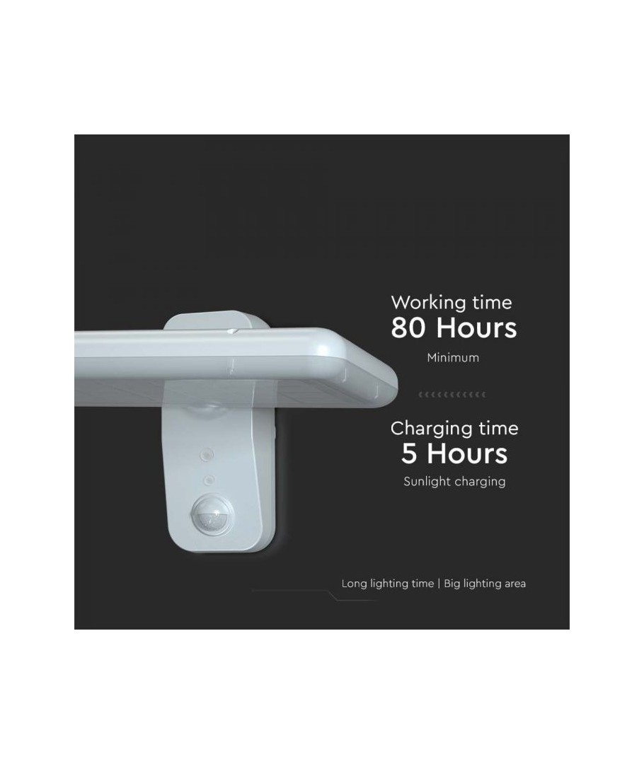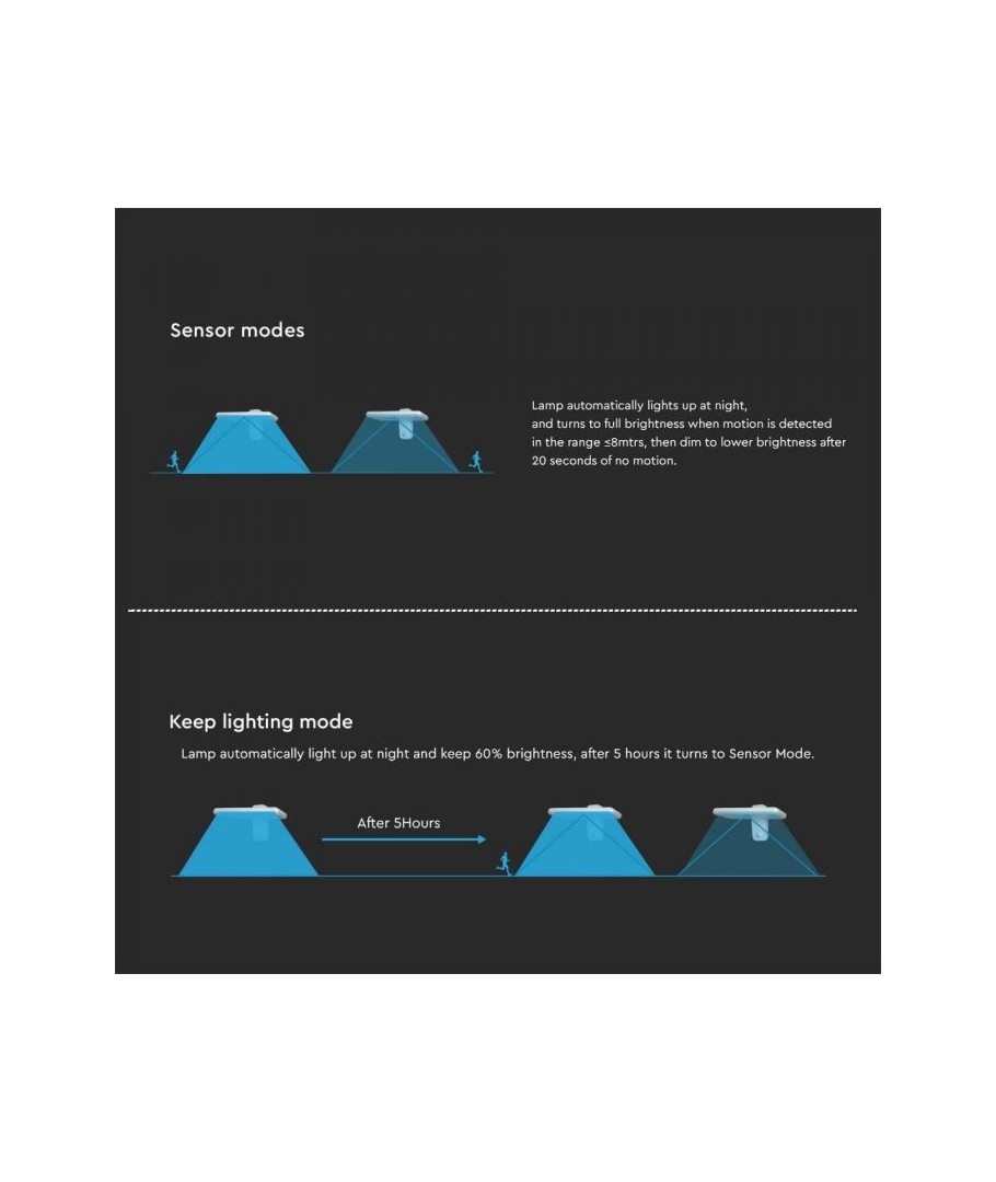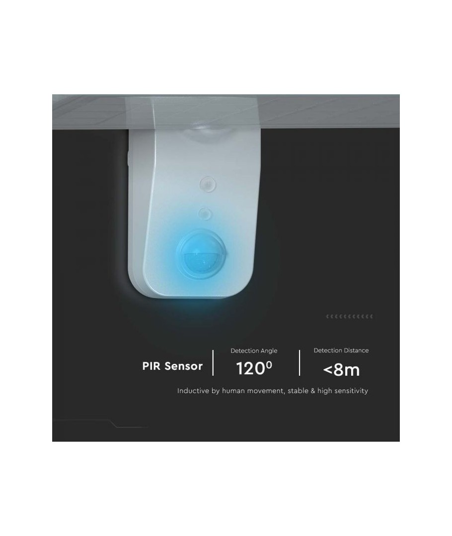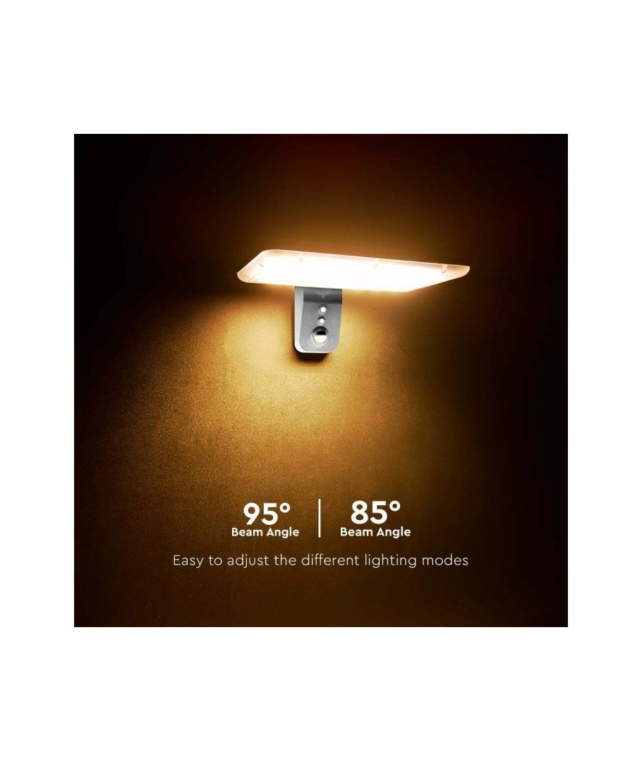 Oppgrader uteområdet ditt med V-Tac 15W LED Solar vegglampe. Denne sorte vegglampen er utstyrt med sensor og har høy beskyttelsesgrad IP65, som gjør den egnet for utendørs bruk.